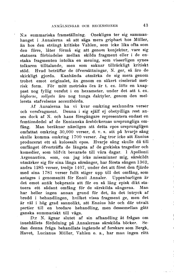 skulle komma omkring 1700 verser. Jag tror icke att Ennius