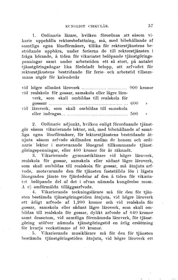 ett årligt arfvode af 1,200 kronor och vid realskola för