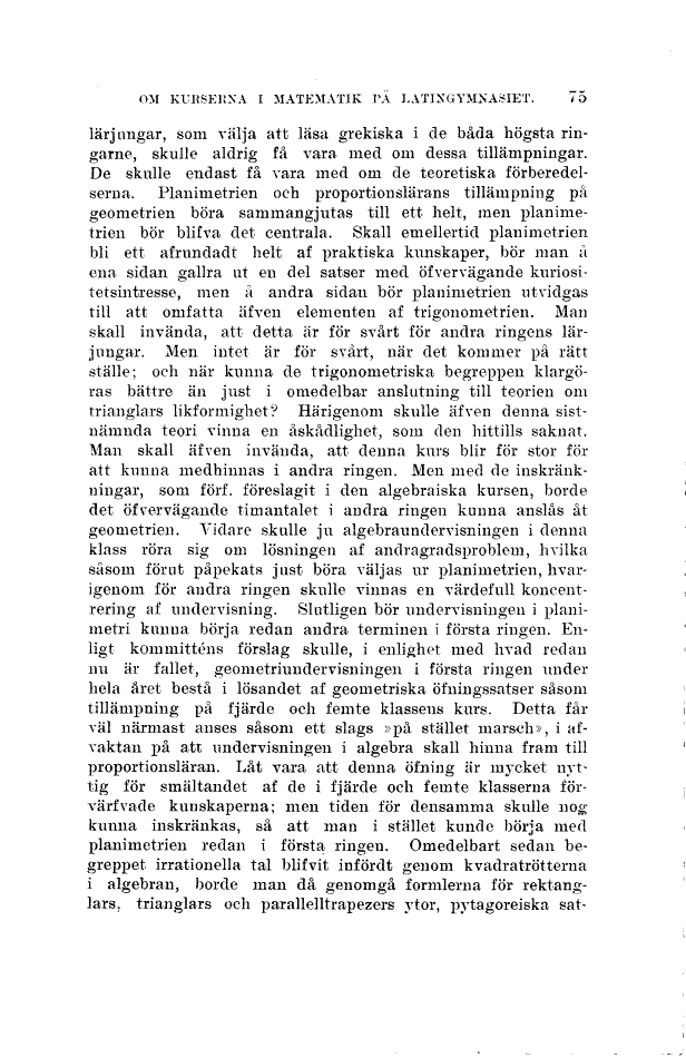 OM KURSERNA I MATEMATIK PÅ LATINGYMNASIET. 75