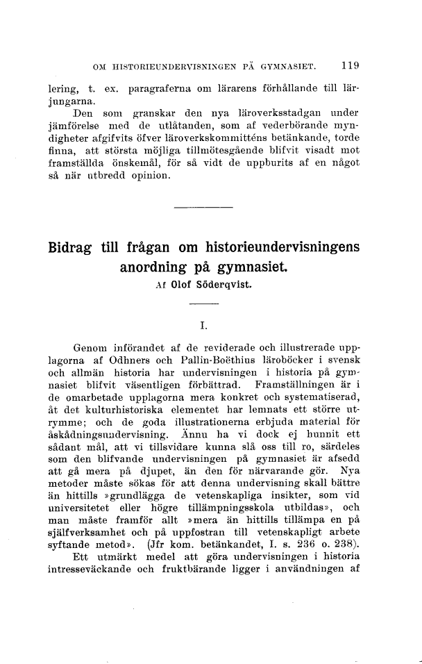 OM HISTORIEUNDERVISNINGEN PA GYMNASIET. 119