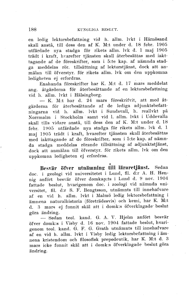 stadga meddelas rör. tillsättning af lektorstjänst, dock att