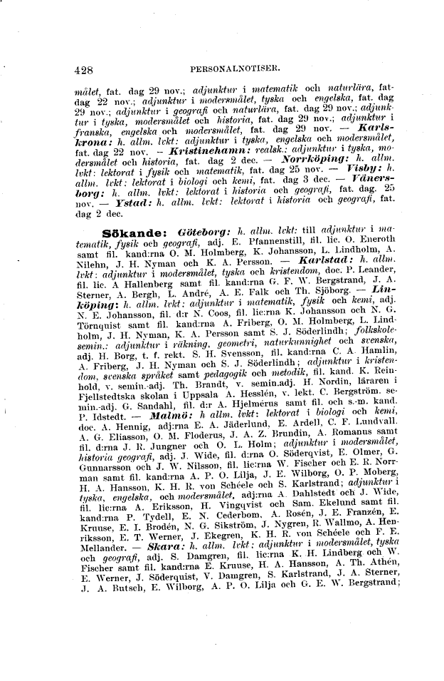 fat. dag 22 nov. – Kristinehamn: realsk.: adjunktur i tyska,