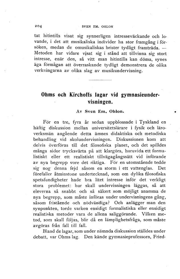 Full resolution (TIFF) - On this page / på denna sida - Häfte 8 - G. A. Jaederholm. Seashore’s metod för prövning av musikalisk begåvning - Sven Em. Ohlon. Ohms och Kirchhoffs lagar vid gymnasialundervisningen