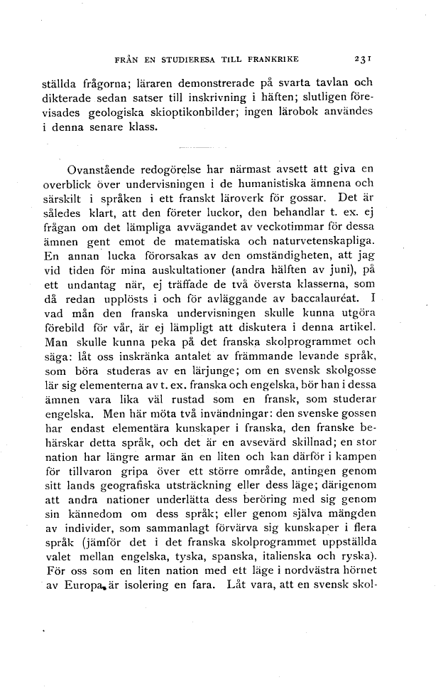 särskilt i språken i ett franskt läroverk för gossar. Det är