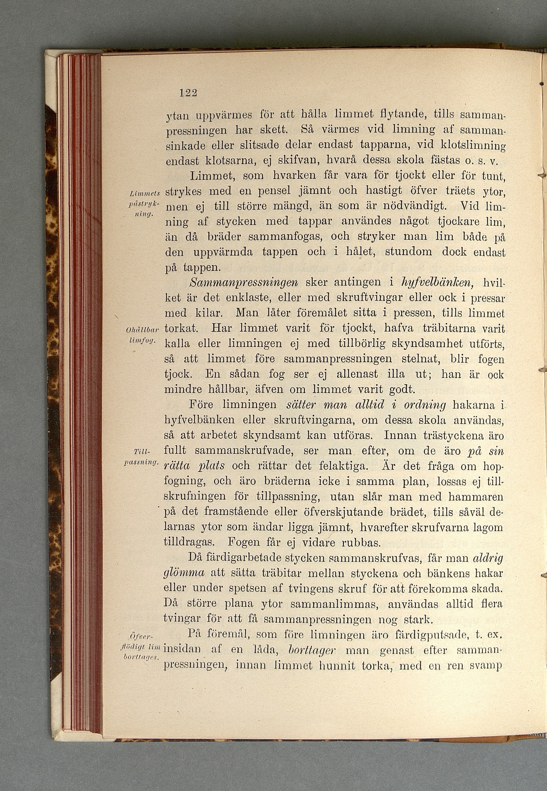 med kilar. Man låter föremålet sitta i pressen, tills limmet