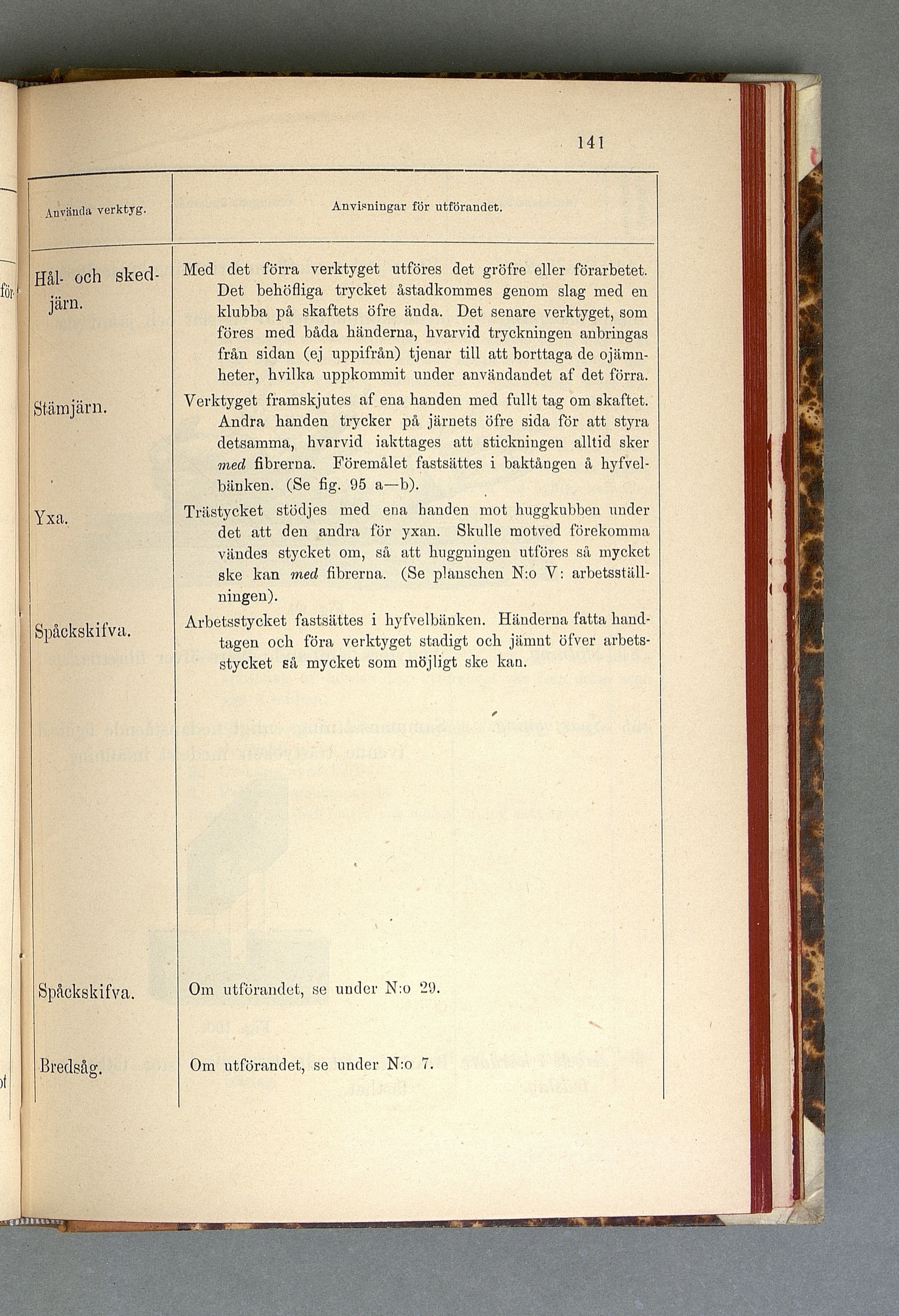 Full resolution (JPEG) - On this page / på denna sida - 5 - I. Öfningar - 26. Urhålkning med hål- och skedjärn - 27. Hålstickning med stämjärn - 28. Huggning - 29. Jämning med spåckskifva - 30. Formning med spåckskifva - 31. Snedsågning