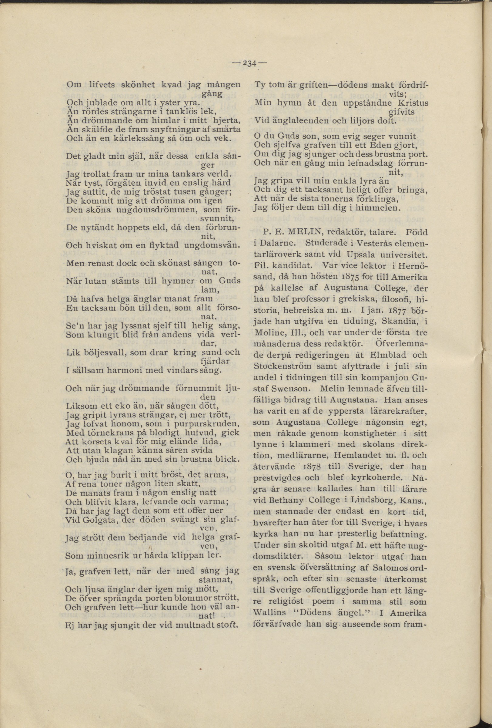 P. E. MELIN, redaktör, talare. Född