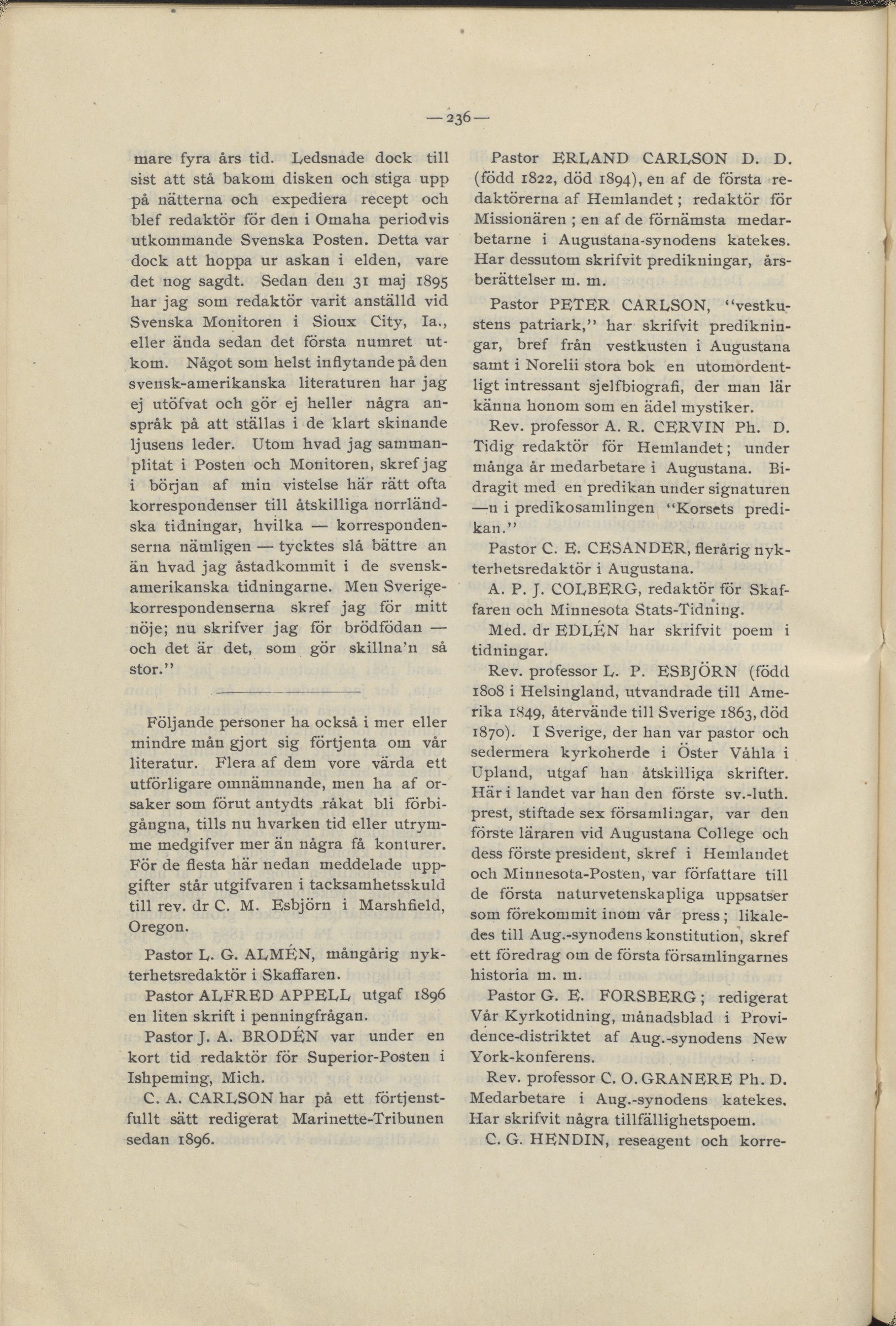 och Minnesota-Posten, var författare till