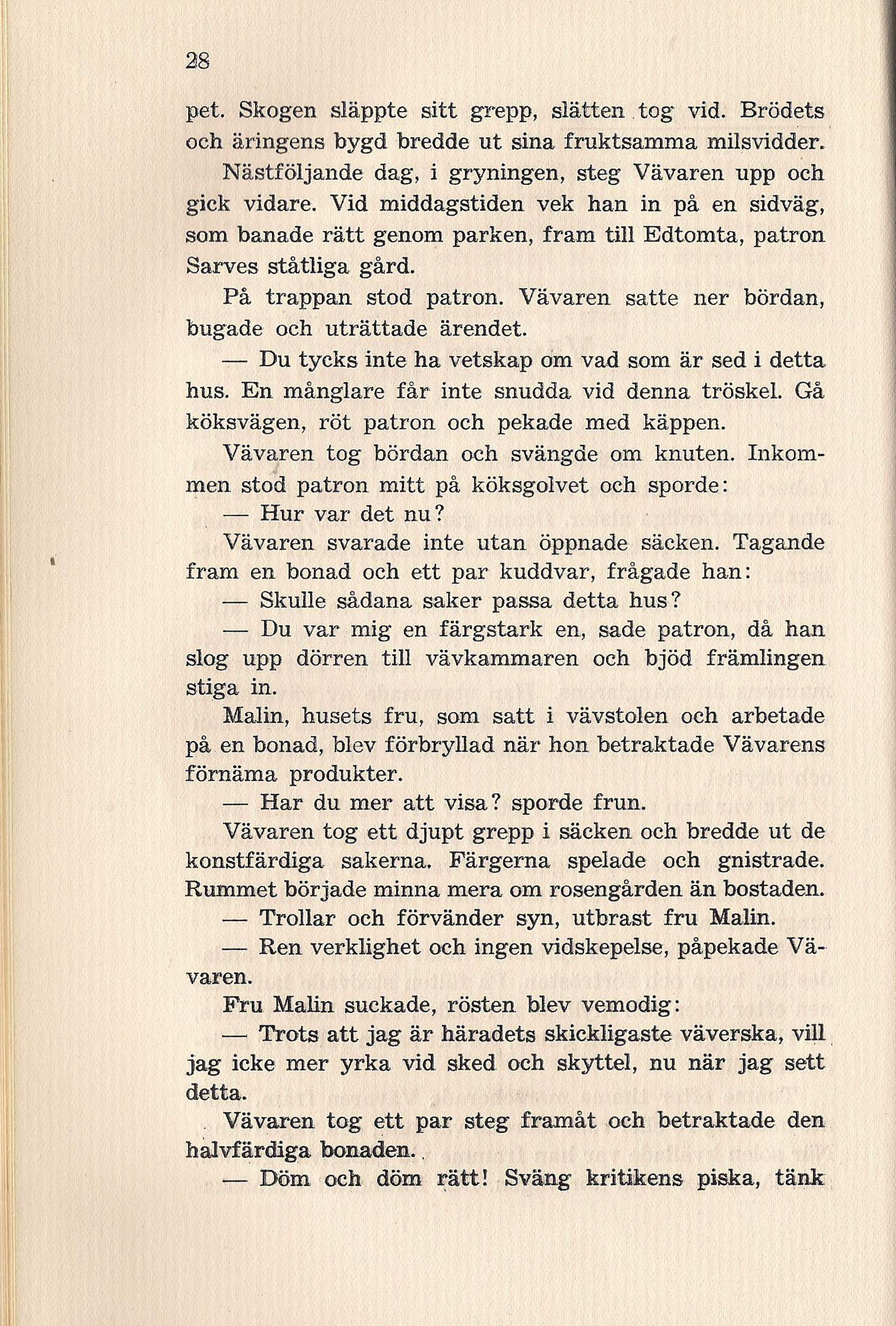 Vävaren svarade inte utan öppnade säcken. Tagande