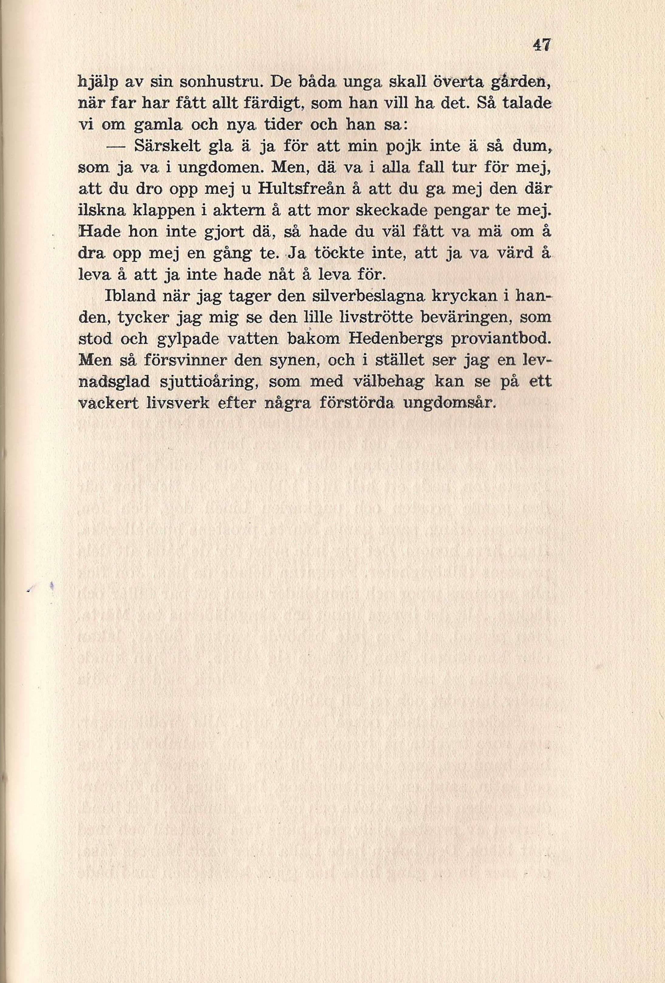 som ja va i ungdomen. Men, dä va i alla fall tur för mej,