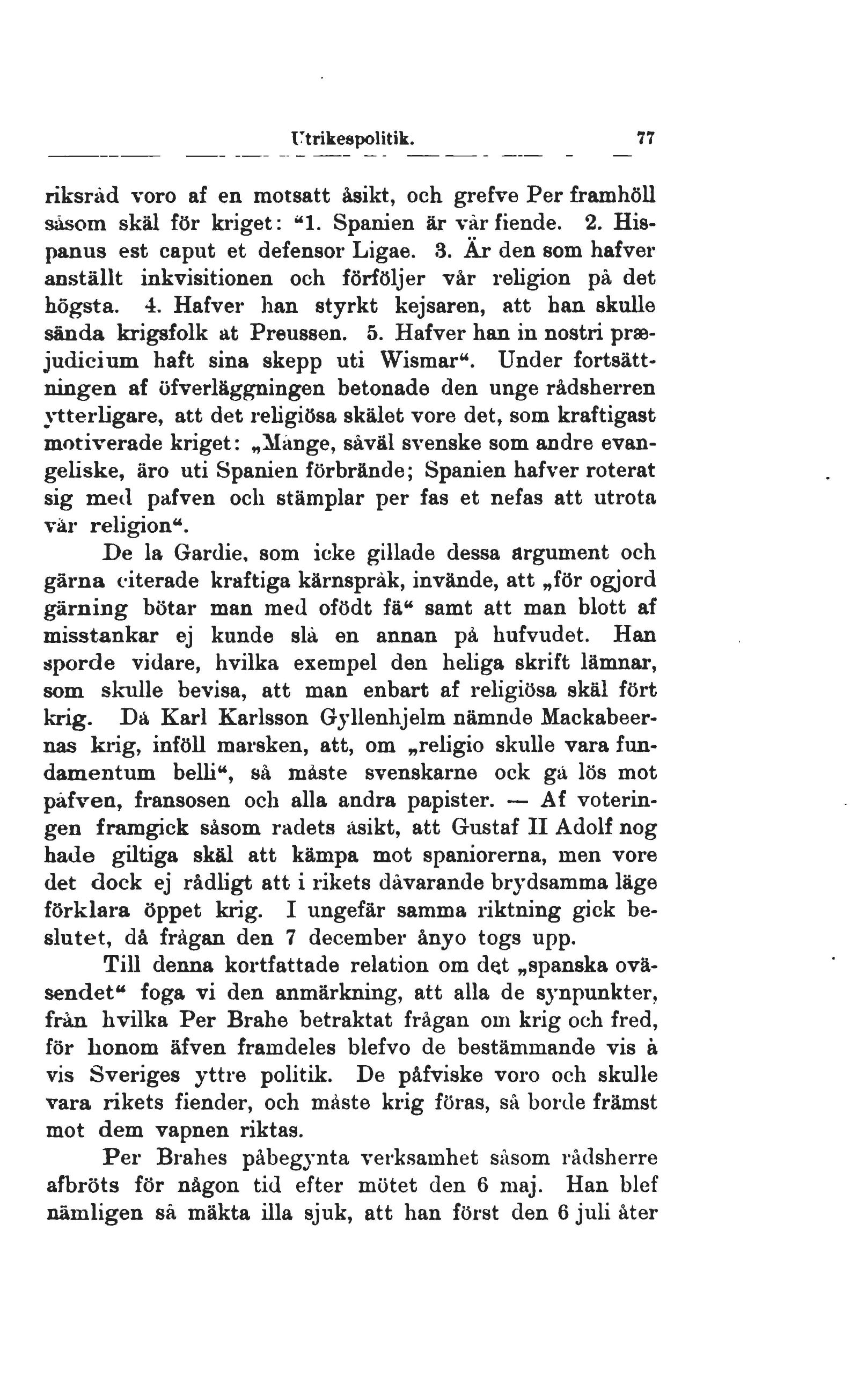 från hvilka Per Brahe betraktat frågan om krig och fred,