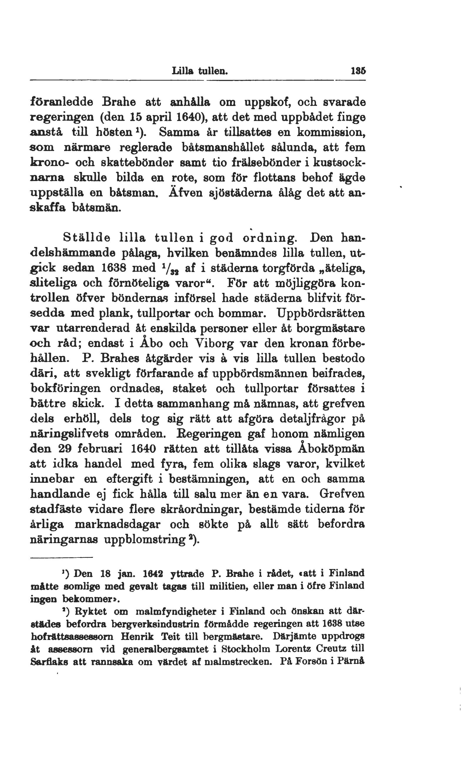 förbehållen. P. Brahes åtgärder vis à vis lilla tullen bestodo