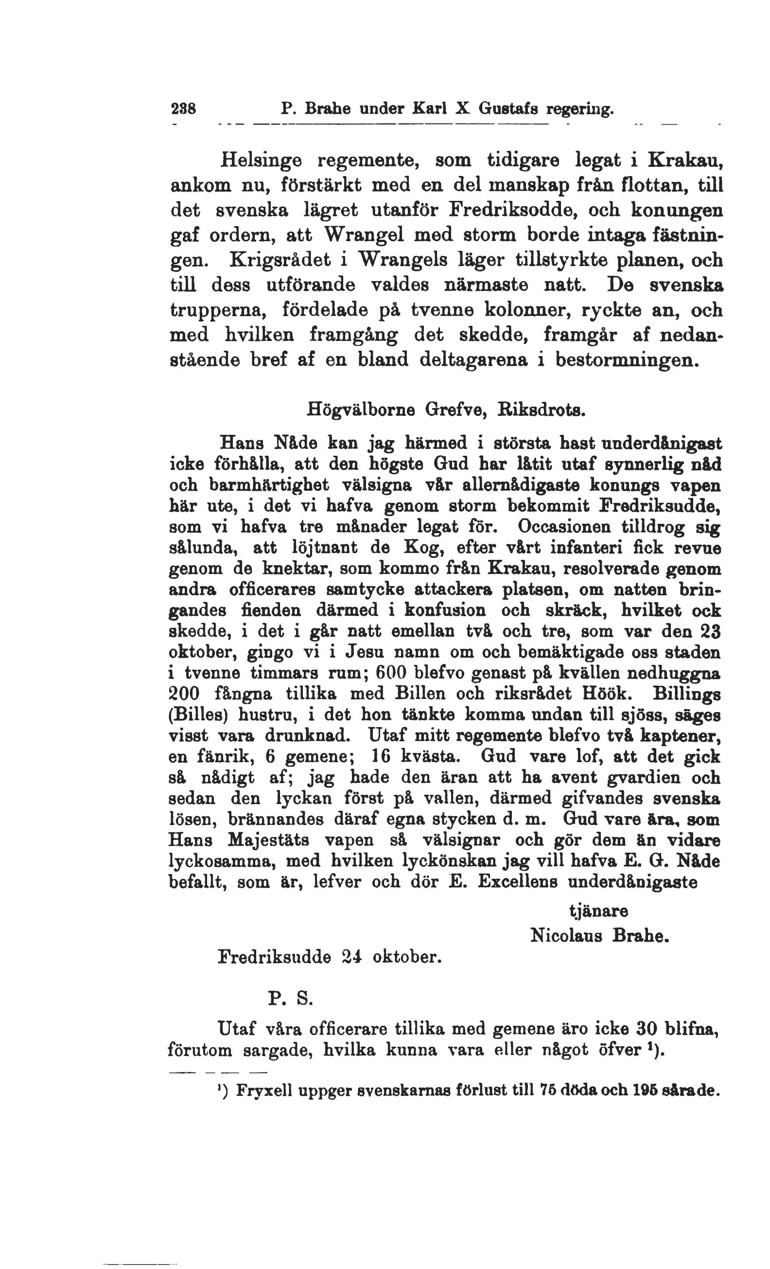 ’) Fryxell uppger svenskarnas förlust till 76 döda och 196 särade.