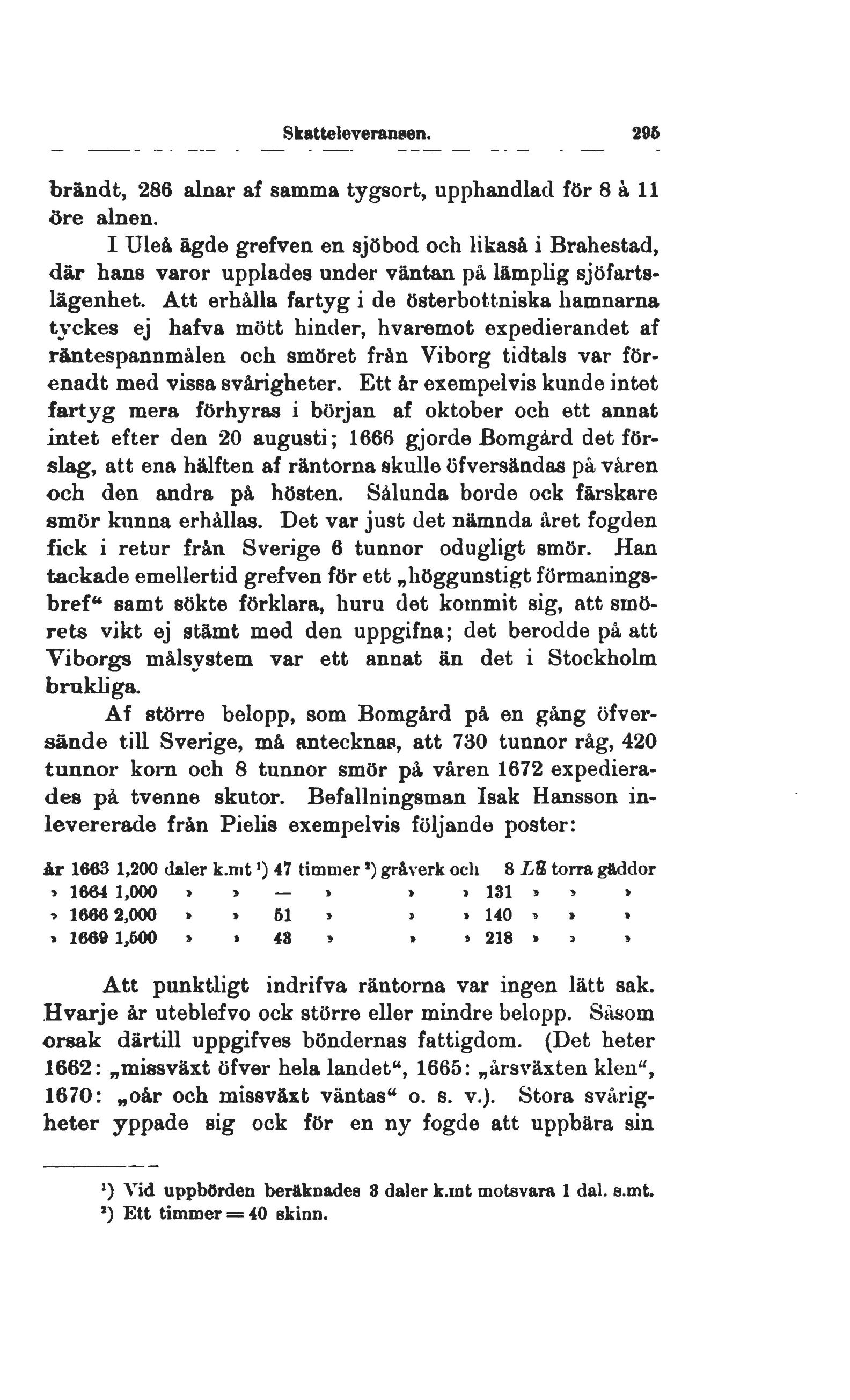 år 1663 1,200 daler k.mt’) 47 timmer’) gràverk och 8 LU torra gäddor
