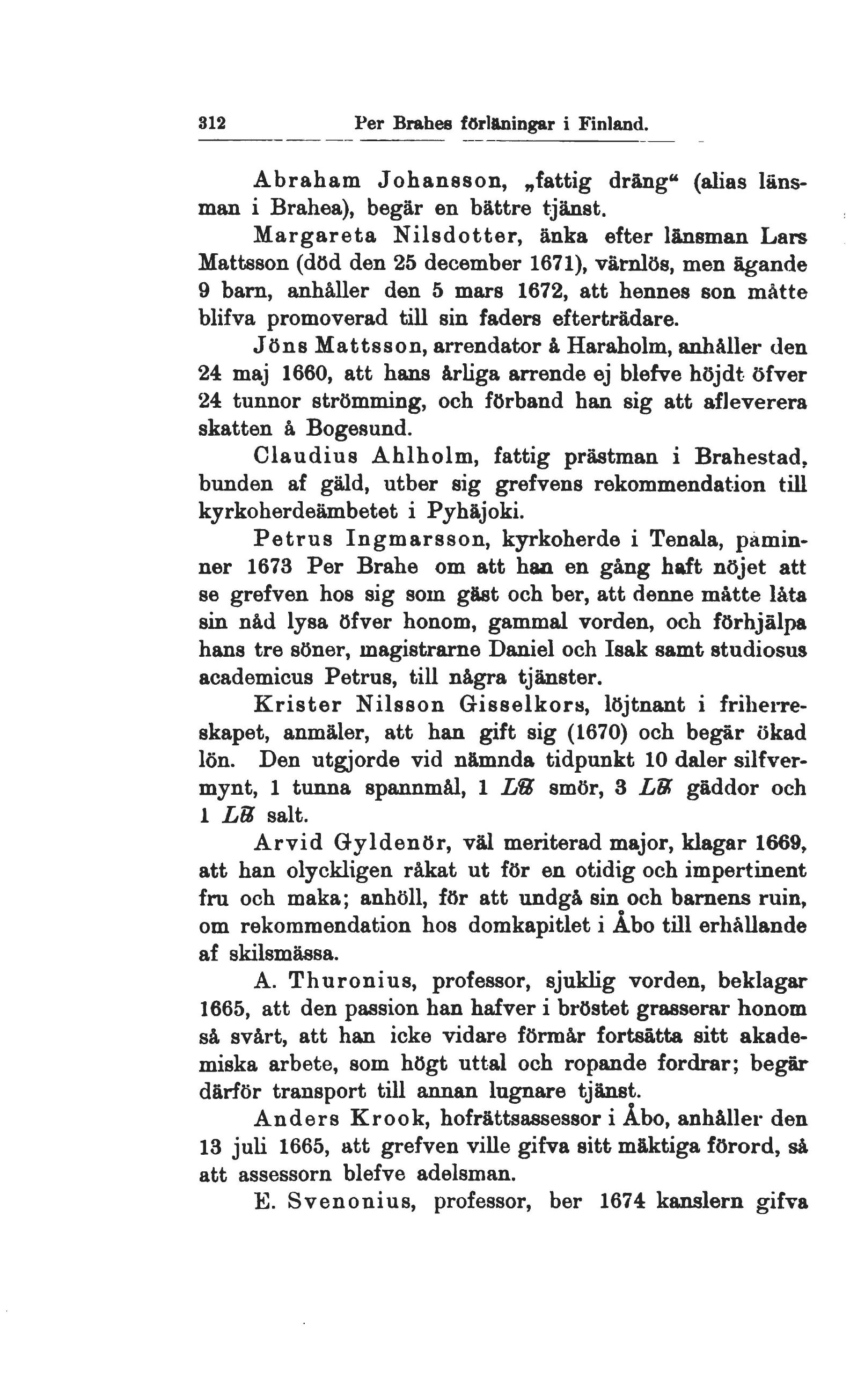 länsman i Brahea), begär en bättre tjänst.