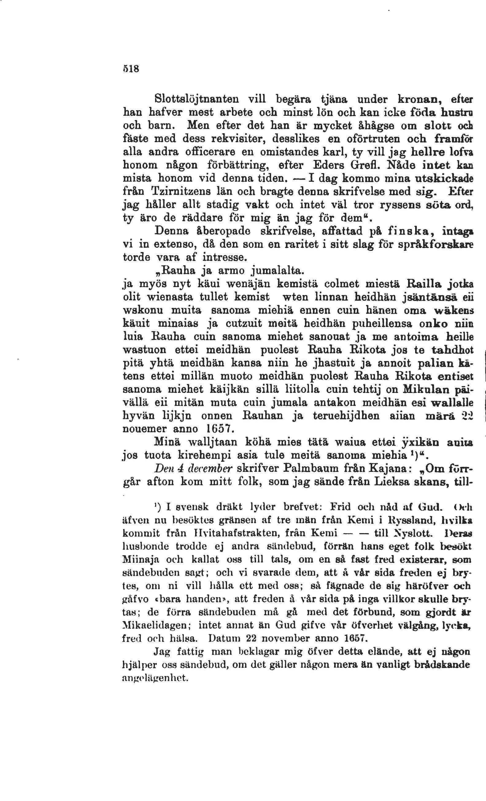 Den 4 december skrifver Palmbaum från Kajana: ,Om