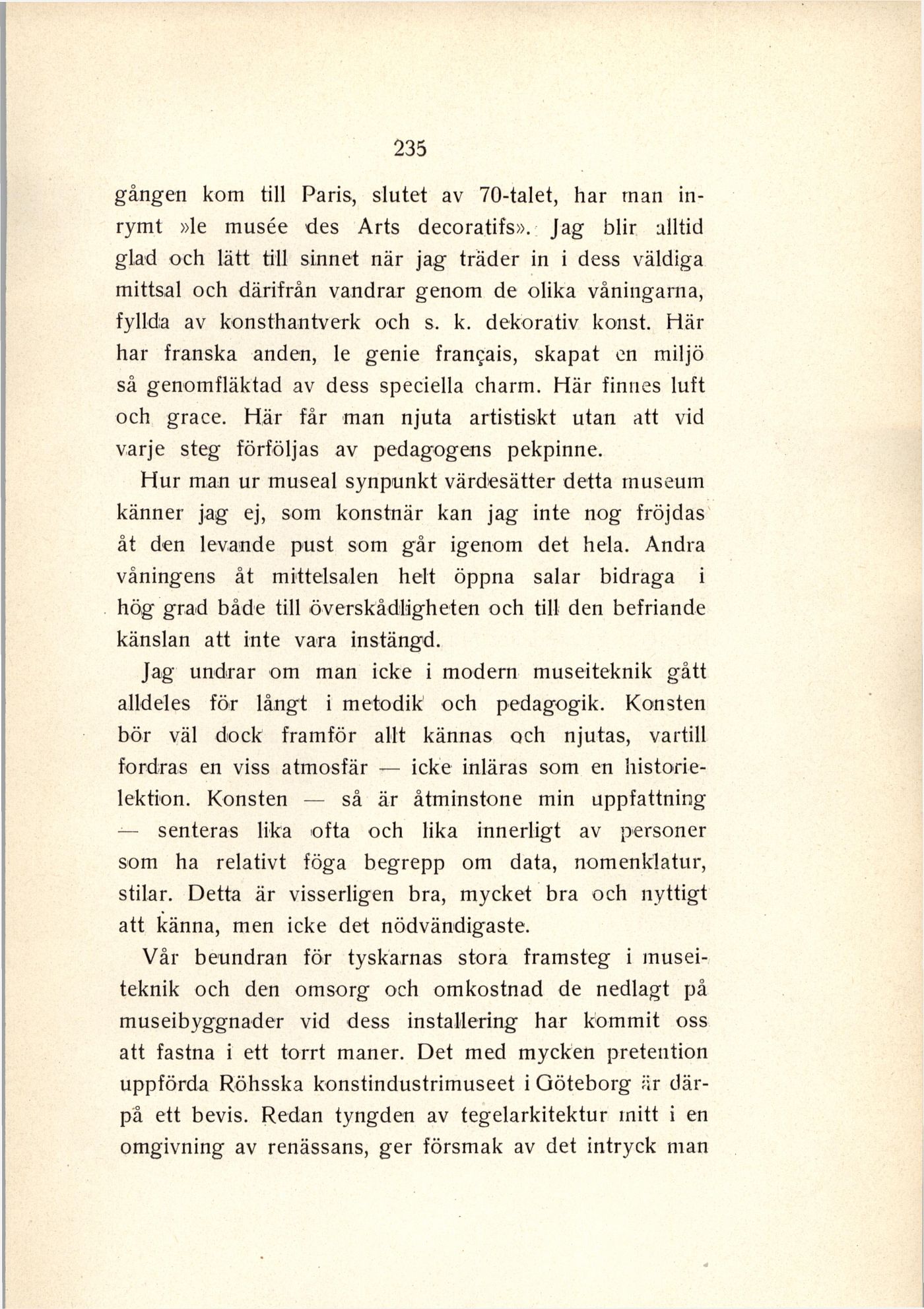 inrymt »le musée des Arts decoratifs». Jag blir alltid