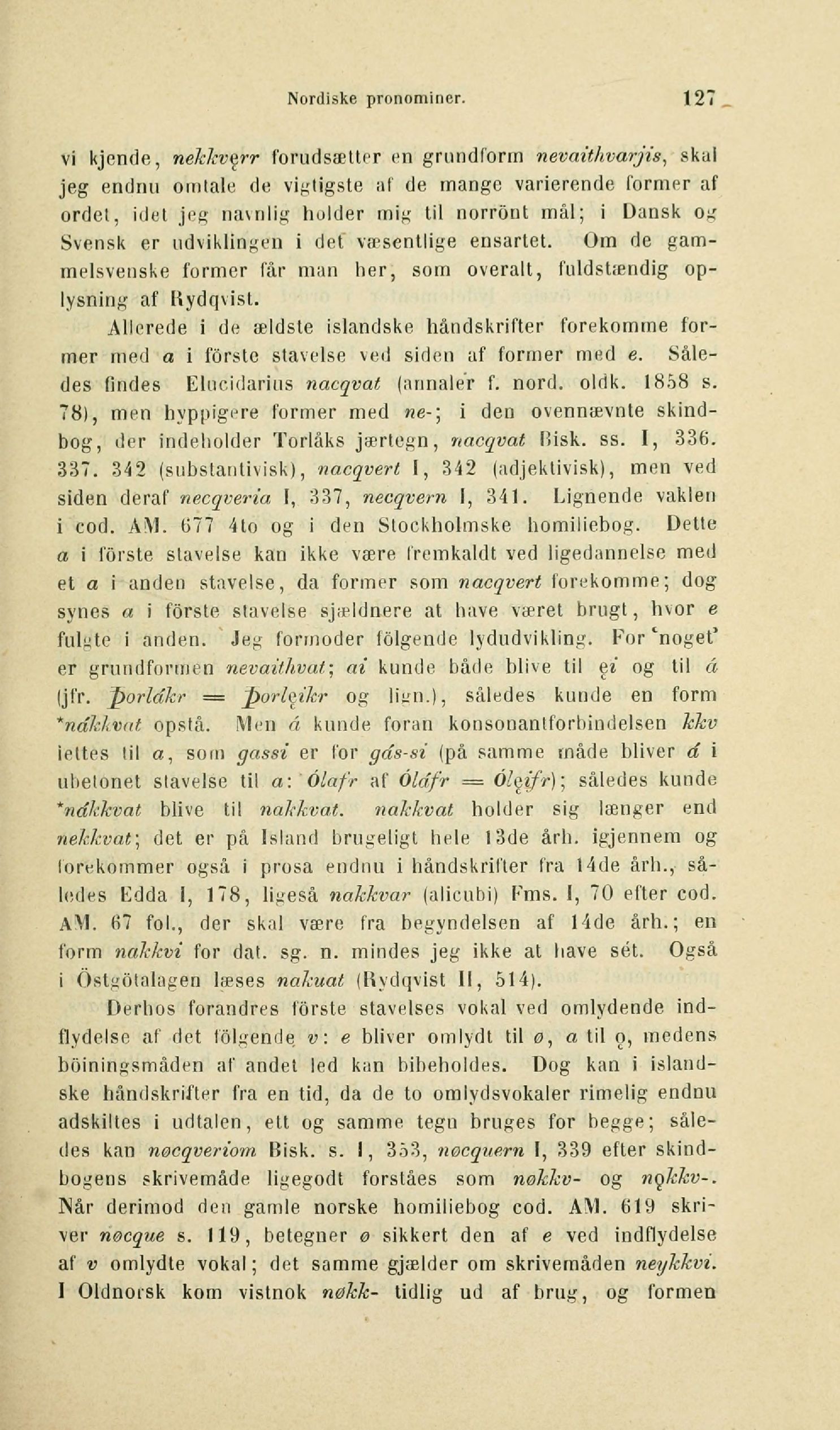 form nakkvi for dat. sg. n. mindes jeg ikke at have sét. Også