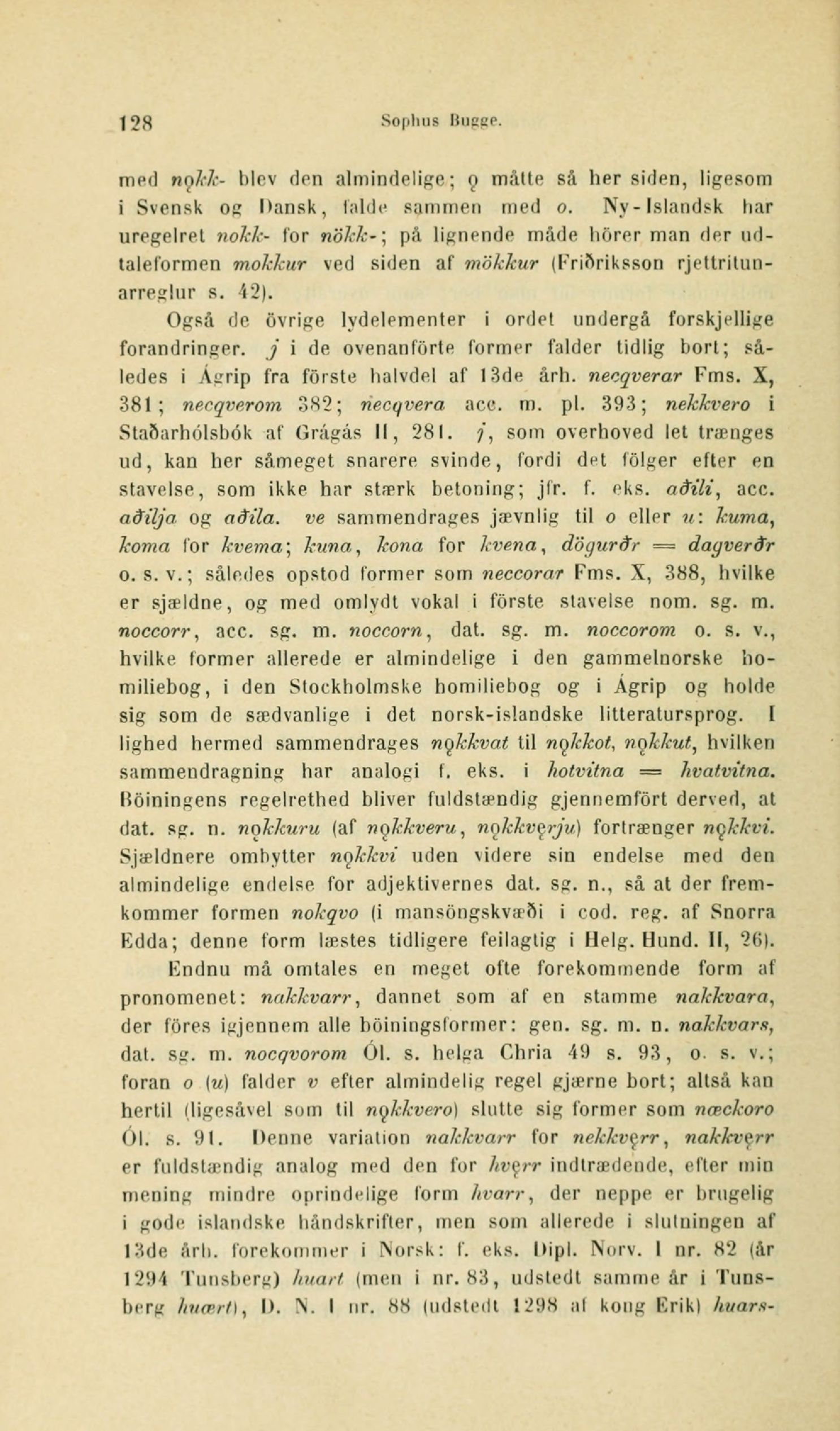 fremkommer formen nokqvo (i mansongskvæfli i cod. reg. af Snorra