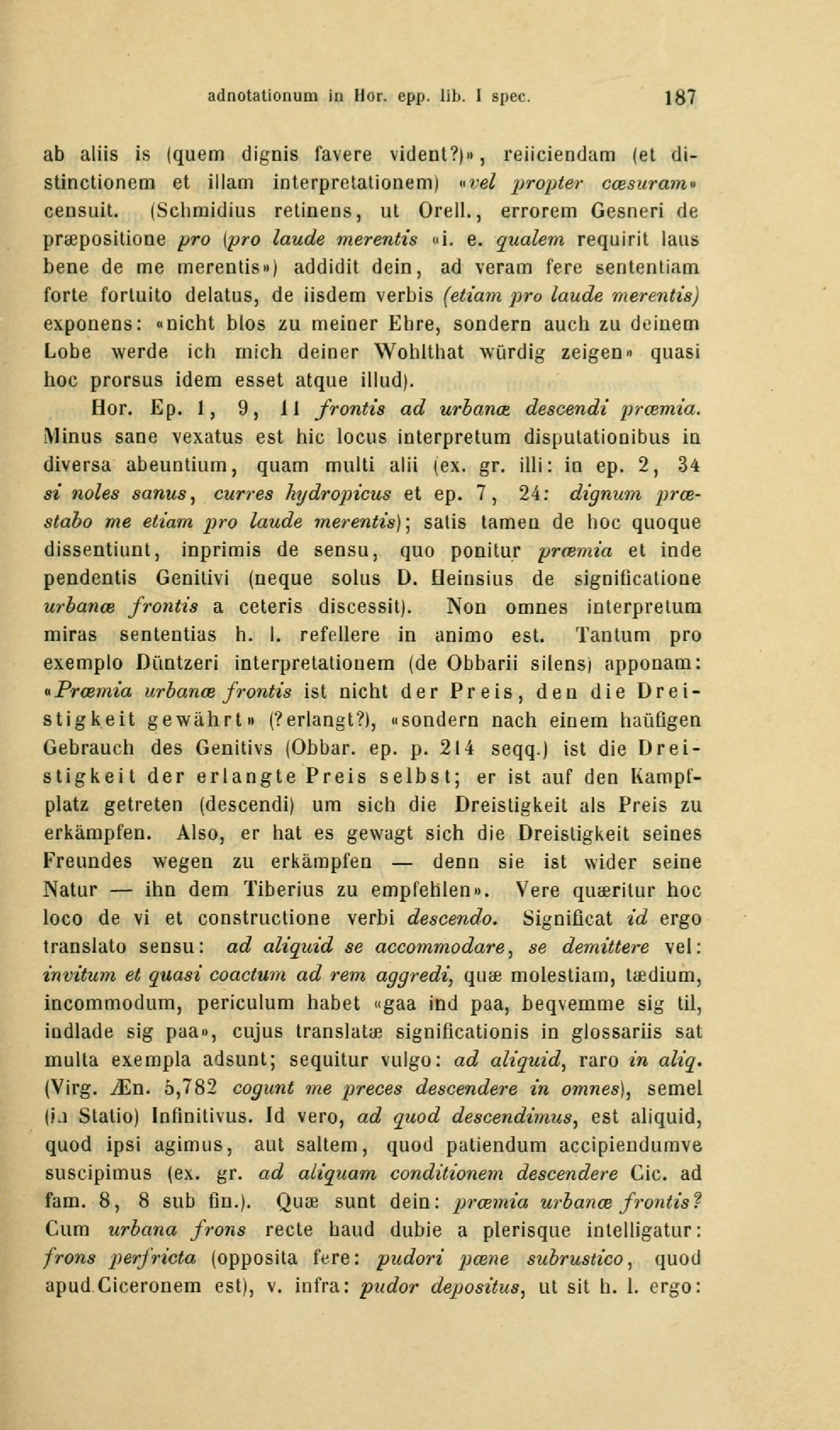 Hor. Ep. 1, 9, 11 frontis ad urbanas, descendi prcemia.