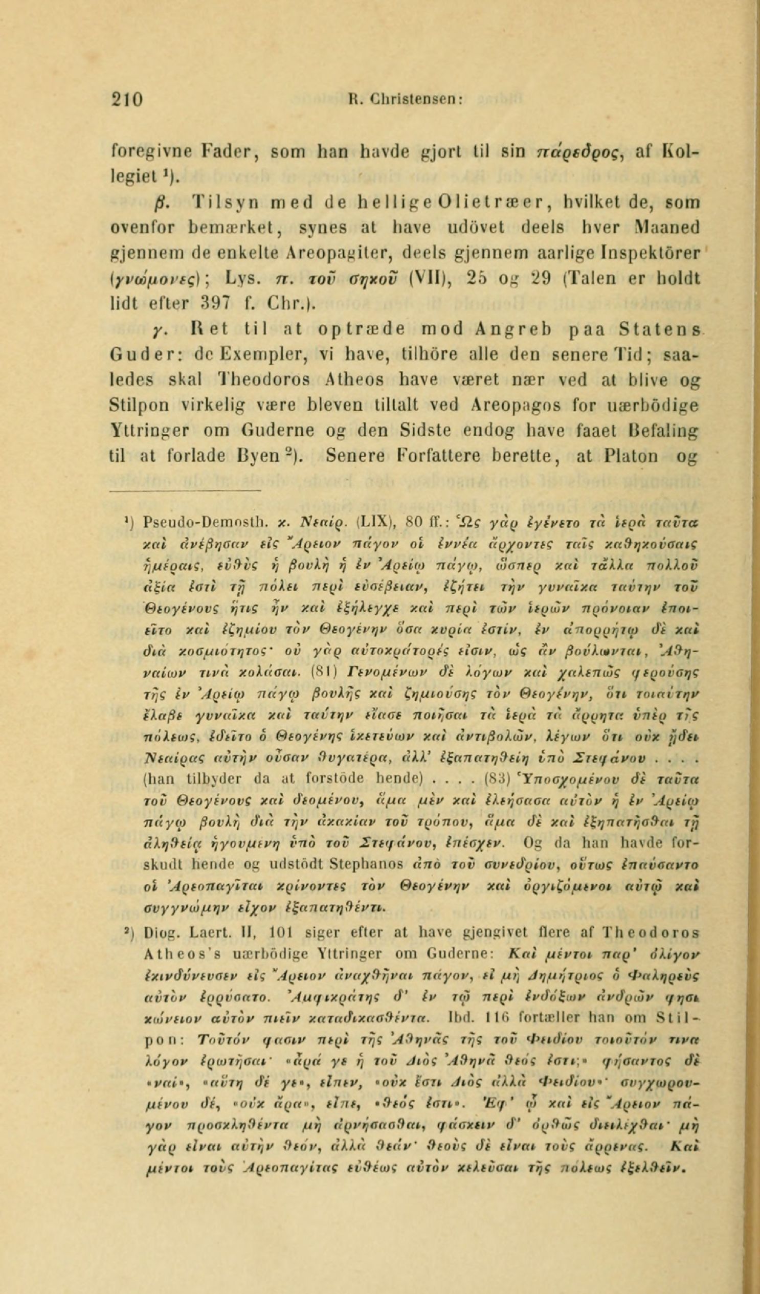 Atheos’s uærbodige Yltringer om Guderne: Kai /uivroi nag* dXiyov