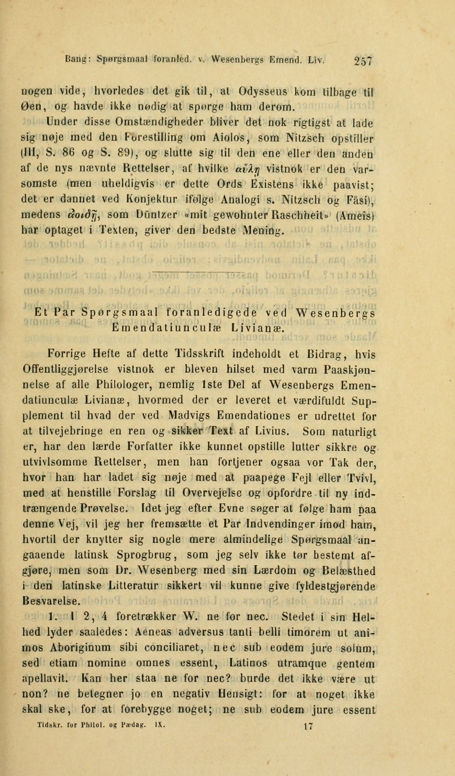1. I 2, 4 foretrækker W. ne for nec. Stedet i sin