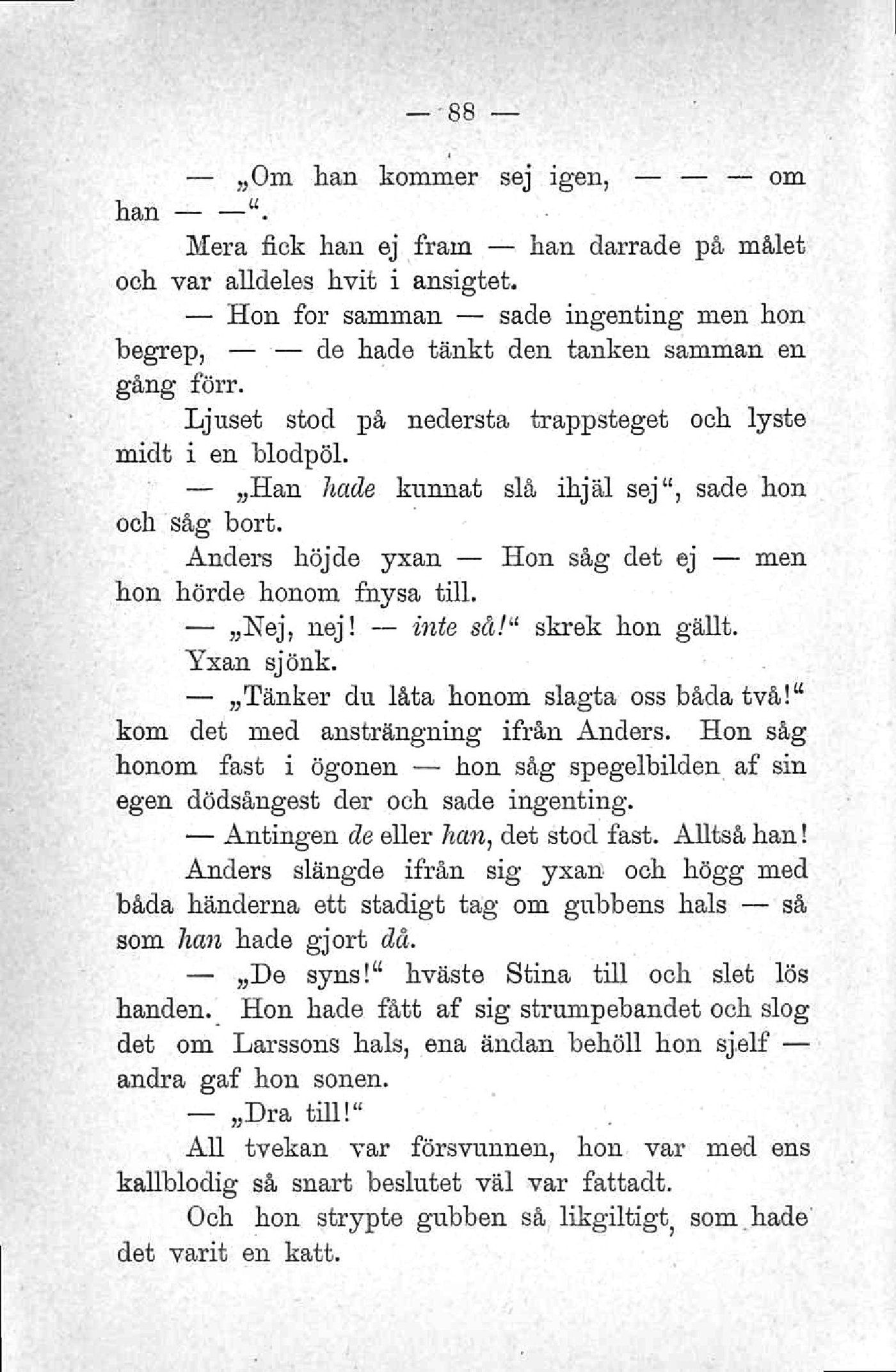 Anders höjde yxan — Hon såg det ej — men