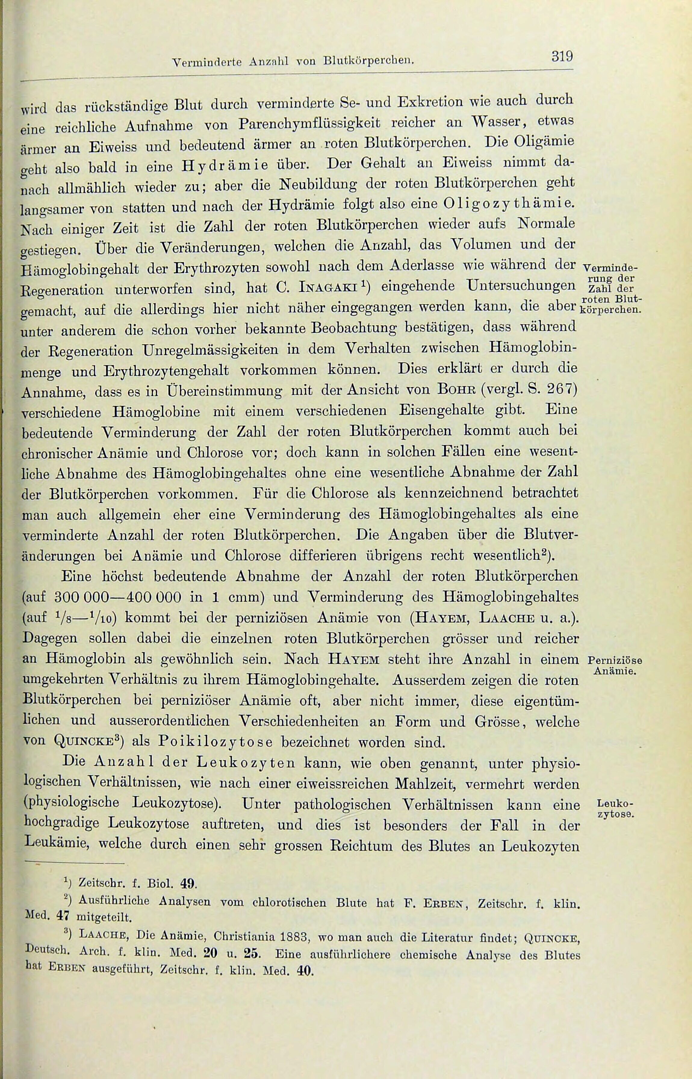 Laacue, Die Anämie, Christiania 1883, wo man auch die Literatur findet; Quincke,