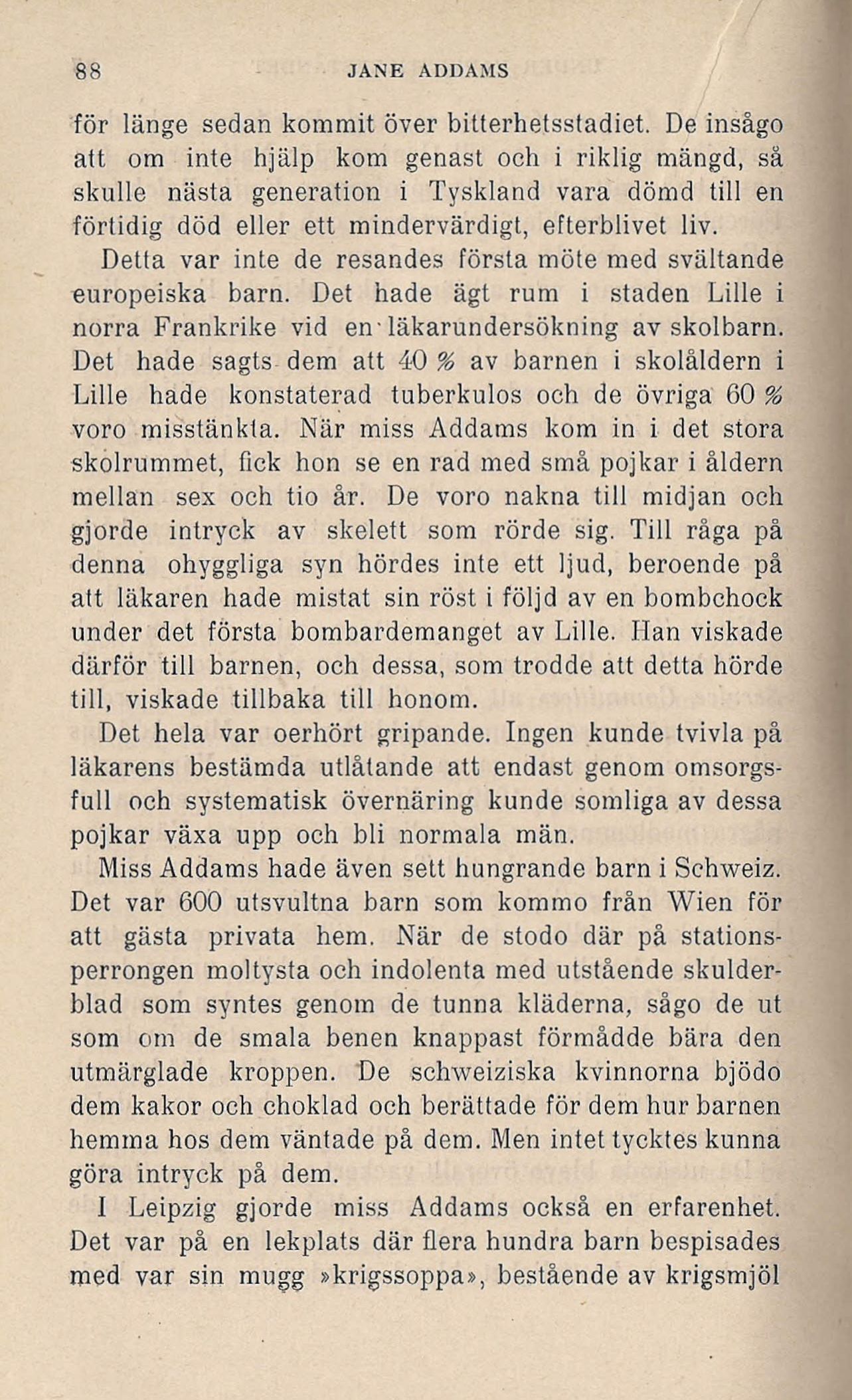 Miss Addams hade även sett hungrande barn i Schweiz.