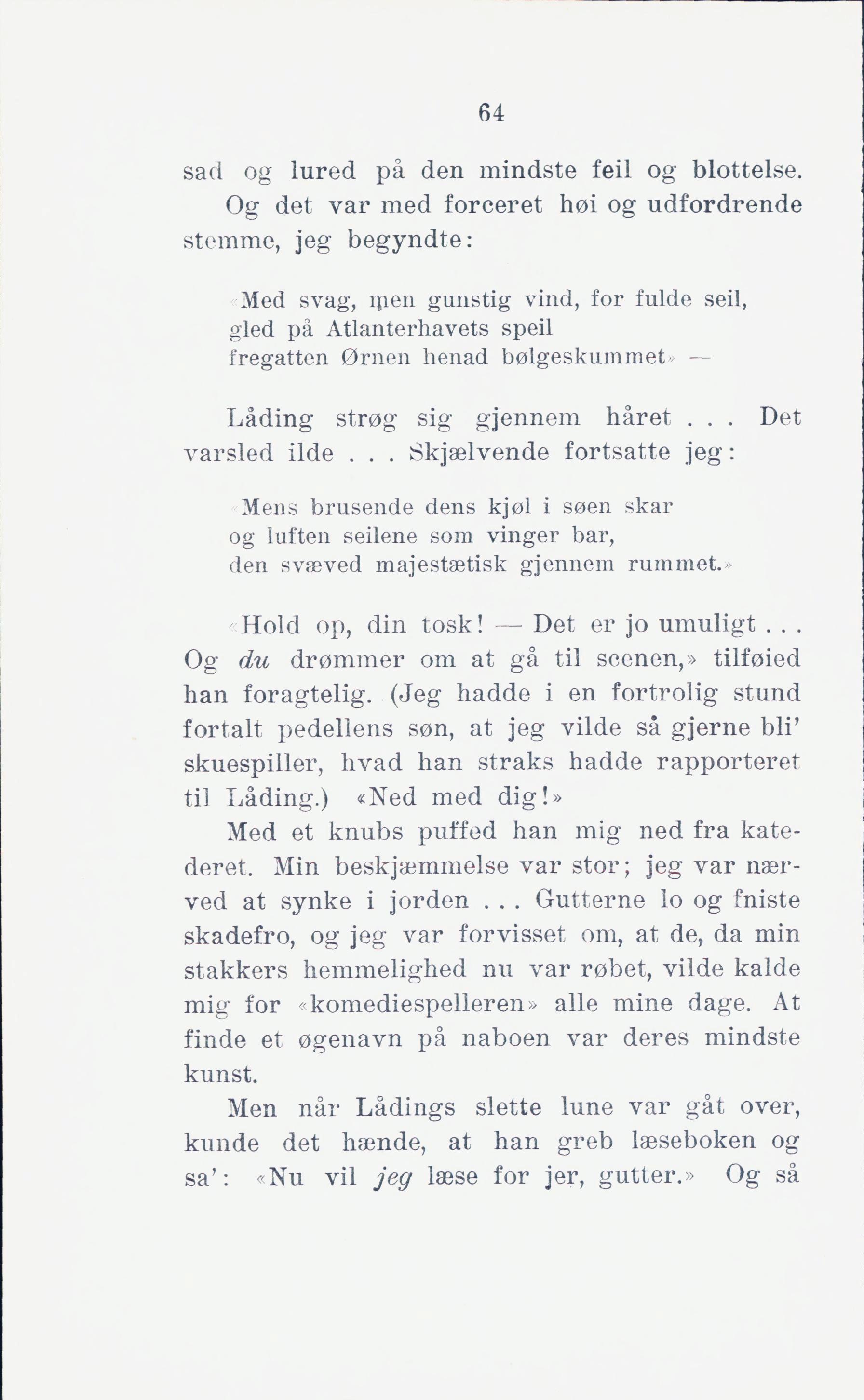 sa’: «Nu vil jeg læse for jer, gutter.» Og så