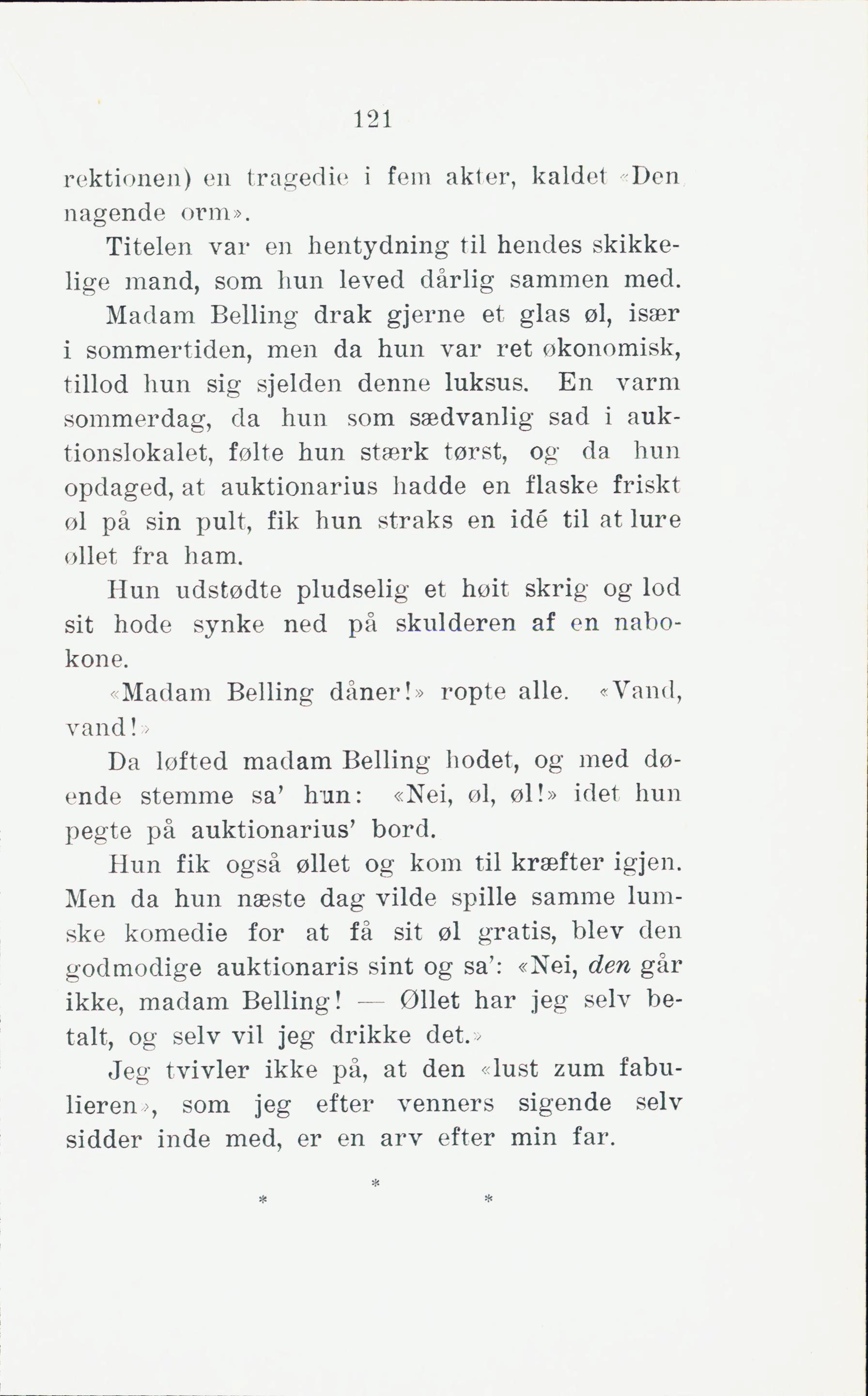 ende stemme sa’ hun: «Nei, øl, øl!» idet hun