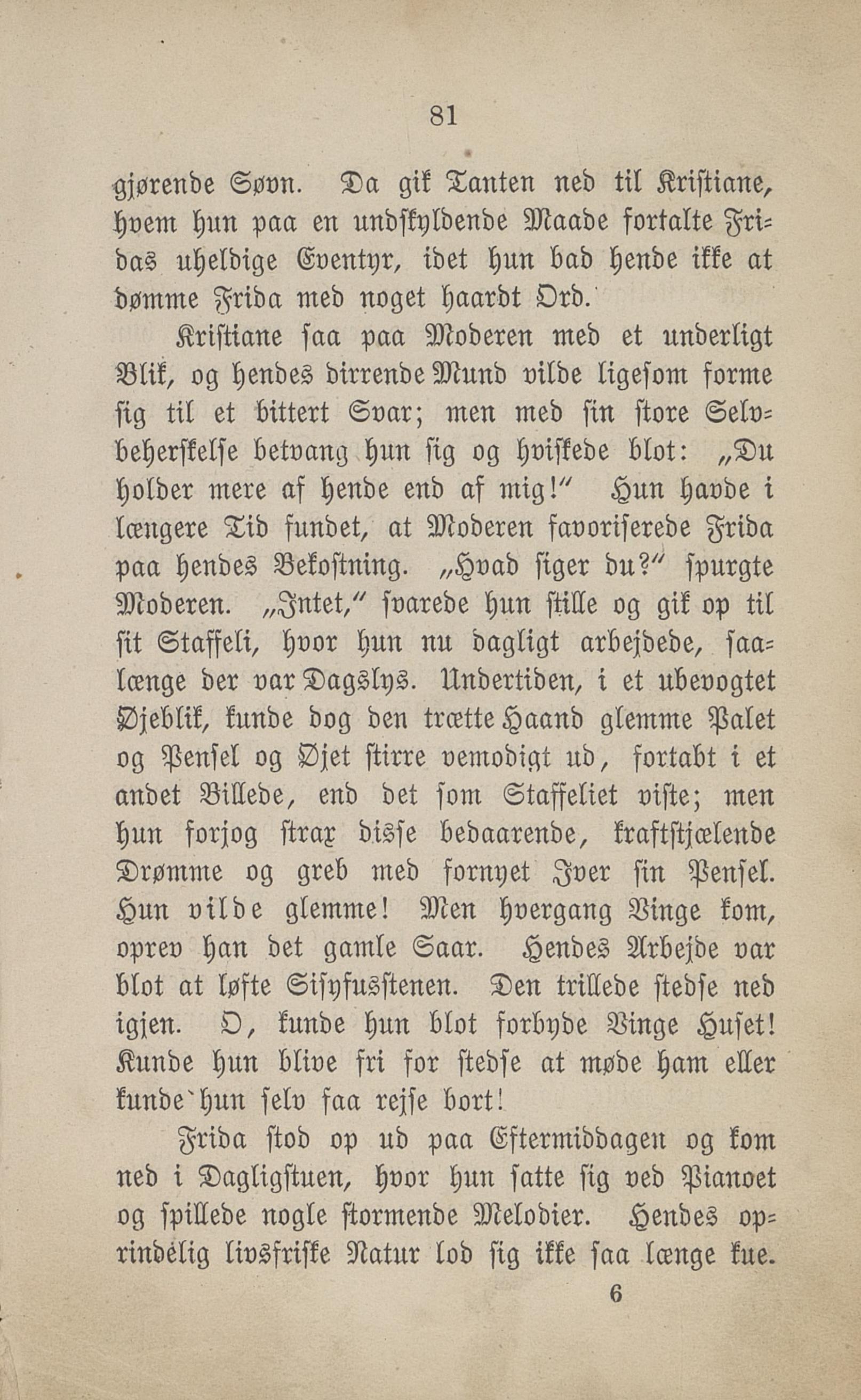 Moderen. »Jntet,« svarede hun stille og gik op til