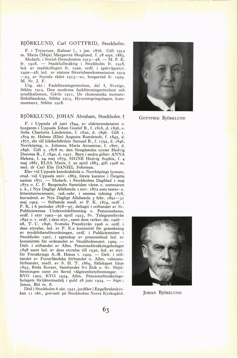 BJÖRKLUND, Carl GOTTFRID, Stockholm.