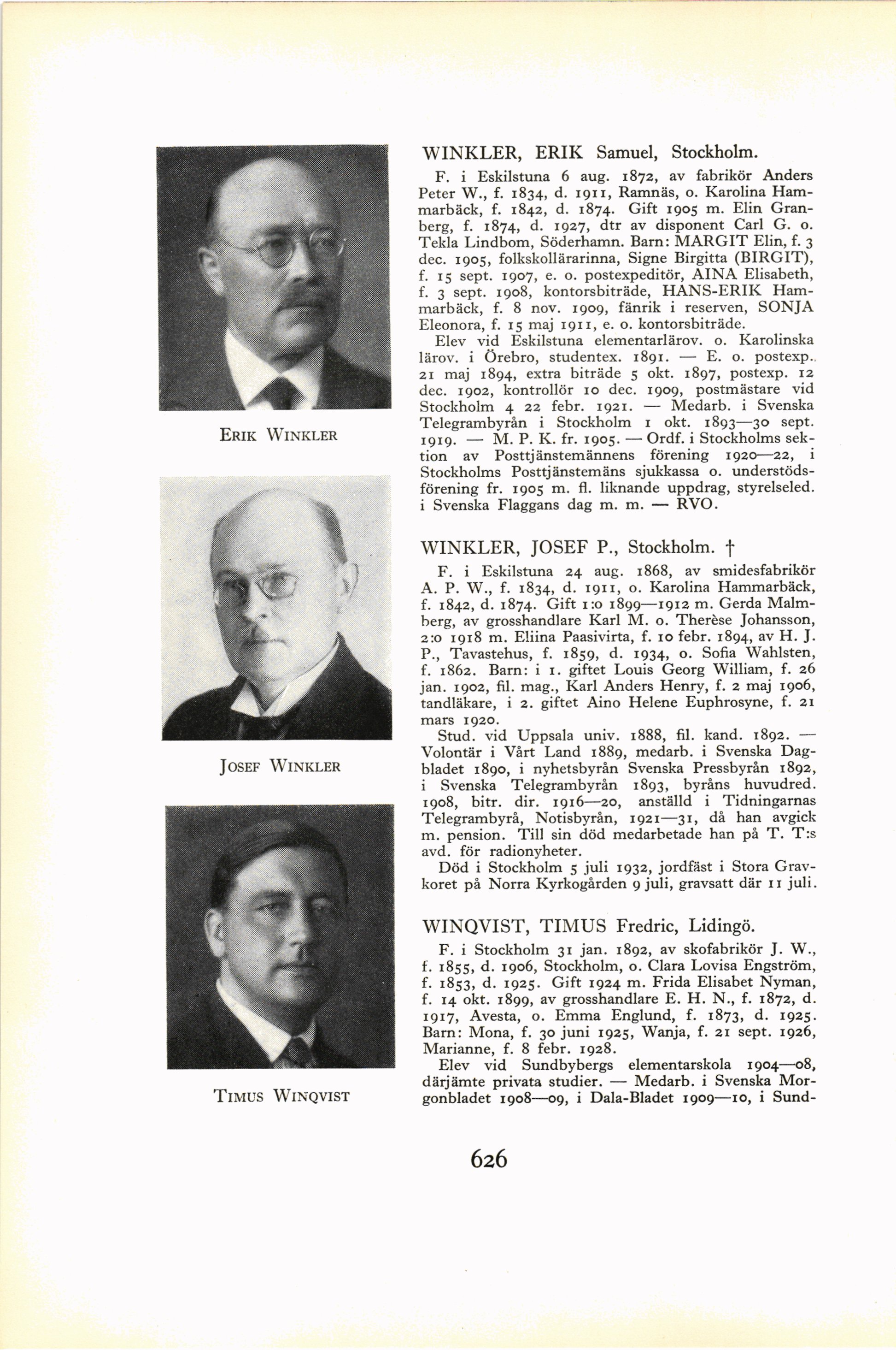 WINKLER, ERIK Samuel, Stockholm.