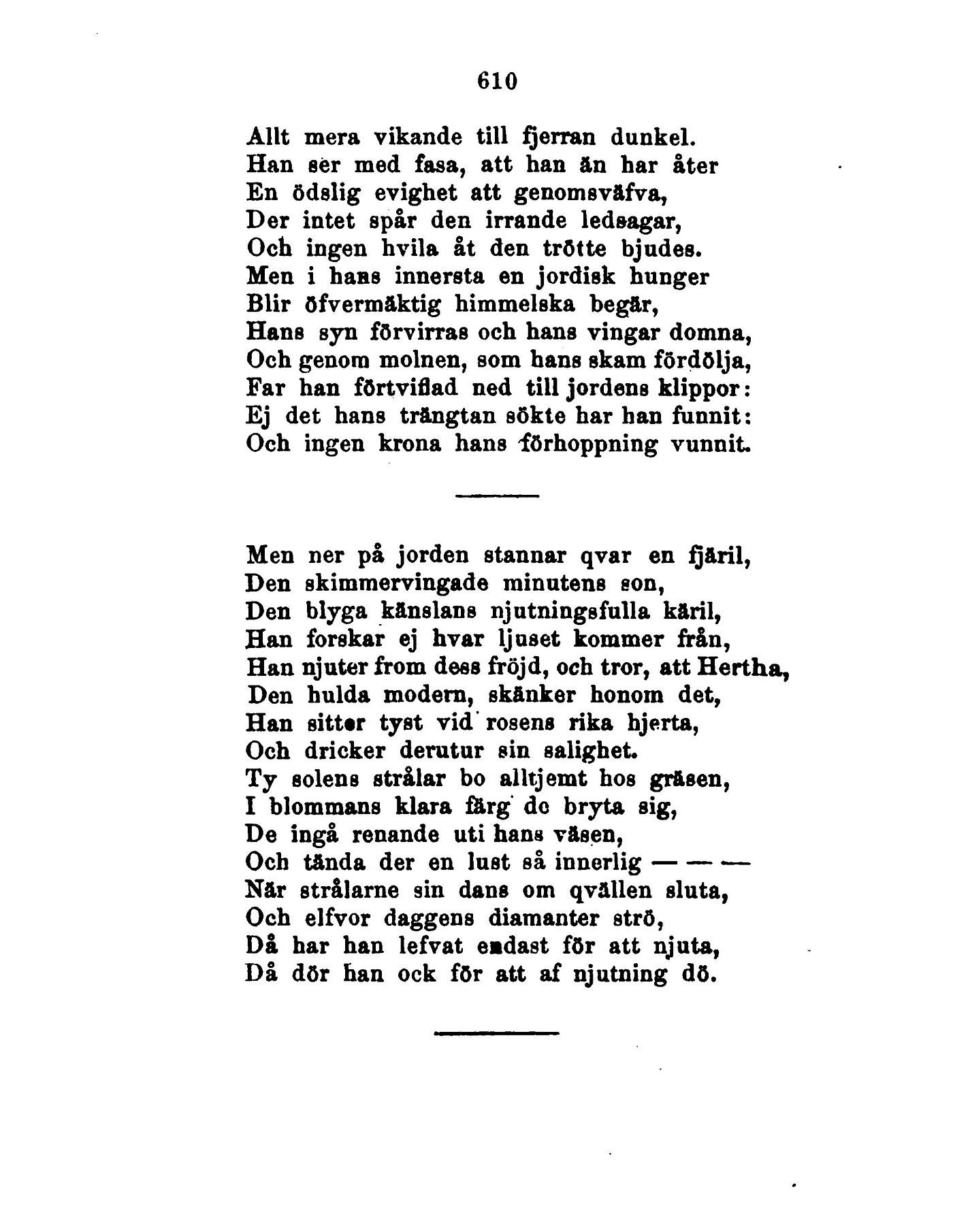 Han njuter from dess fröjd, och tror, att Hertha,