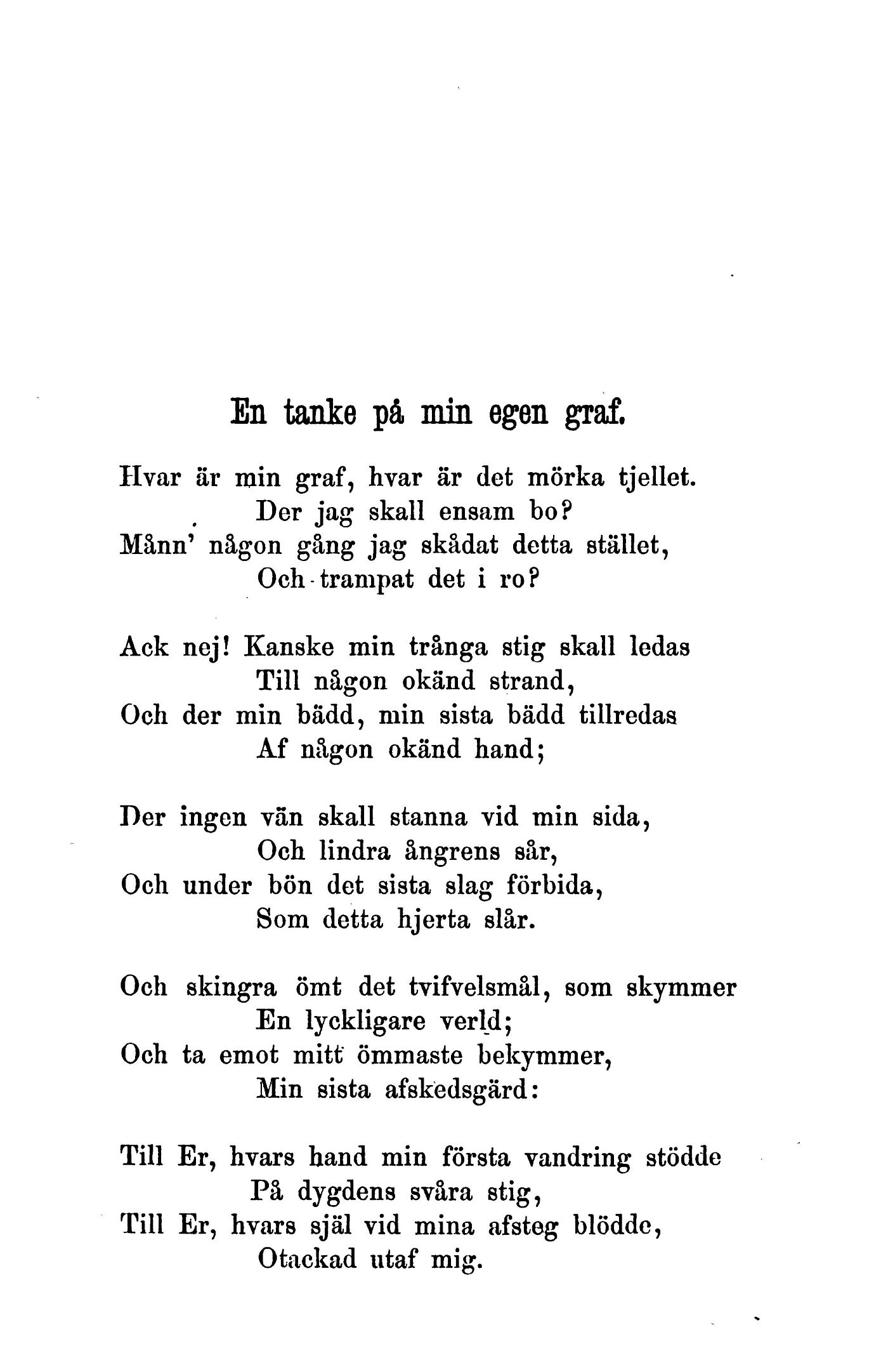 Hvar är min graf, hvar är det mörka tjellet.