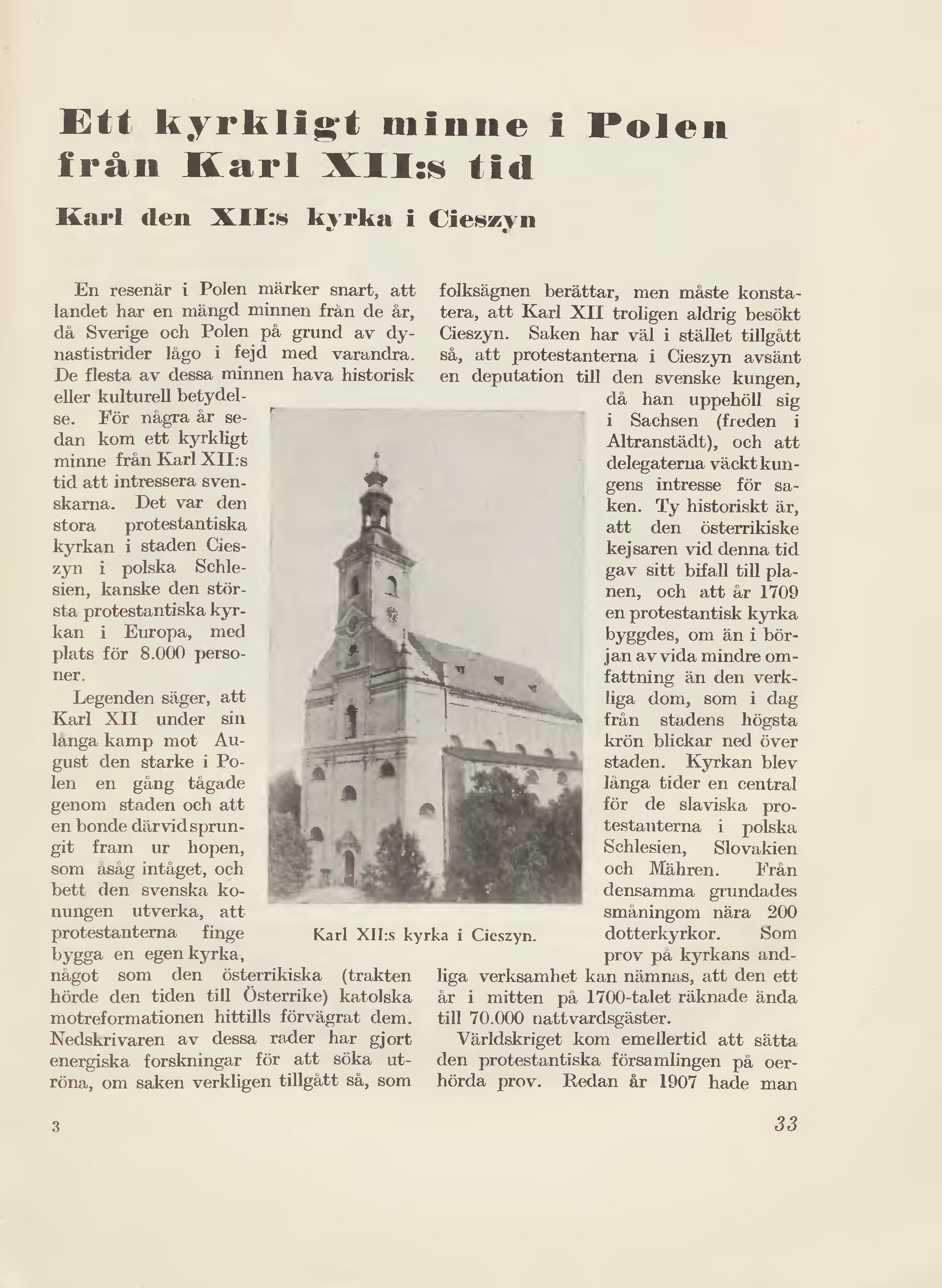Full resolution (JPEG) - On this page / på denna sida - Ett kyrkligt minne i Polen från Karl XII:s tid. Karl den XII:s kyrka i Cieszyn