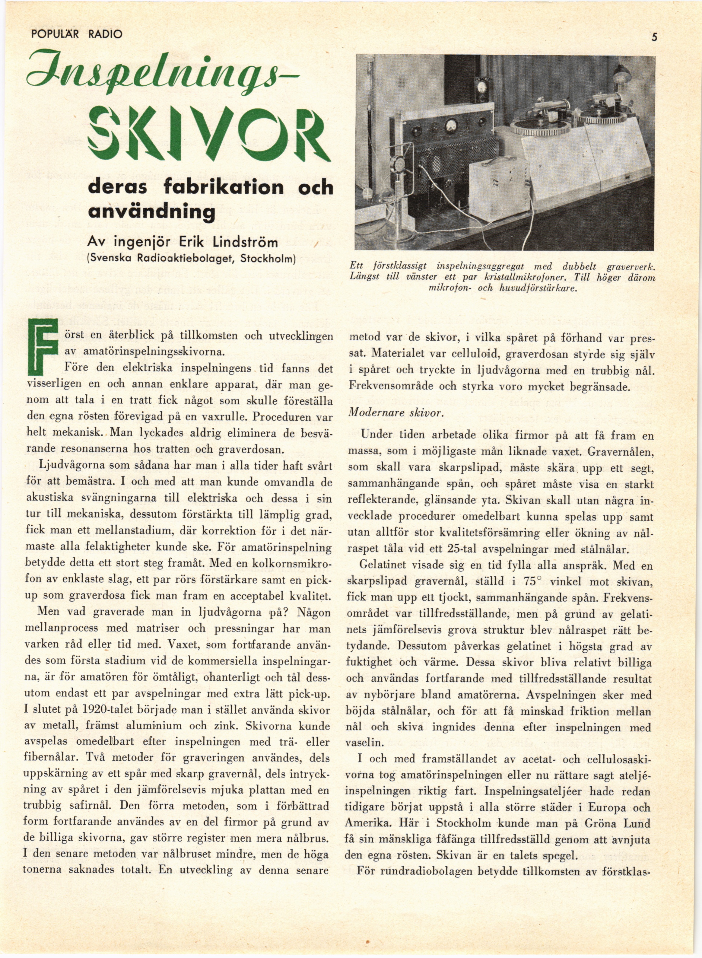 Full resolution (JPEG) - On this page / på denna sida - N:r 1. Januari - Inspelningsskivor, deras fabrikation och användning, av ingenjör Erik Lindström