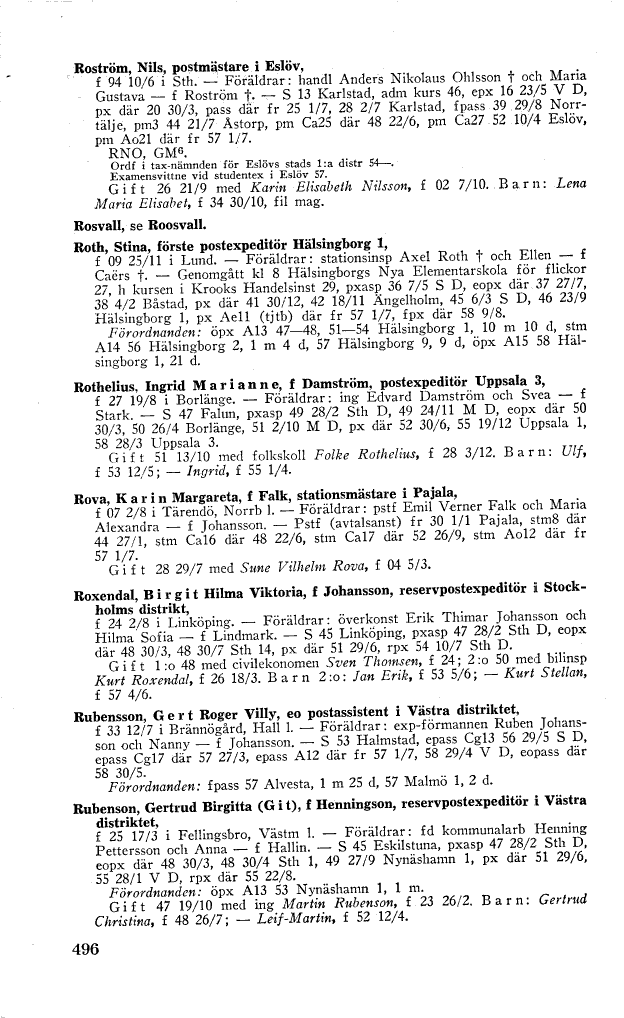 Kurt Roxendal, f 26 18/3. Barn 2:o: Jan Erik, f 53 5/6; — Kurt Stellan,
