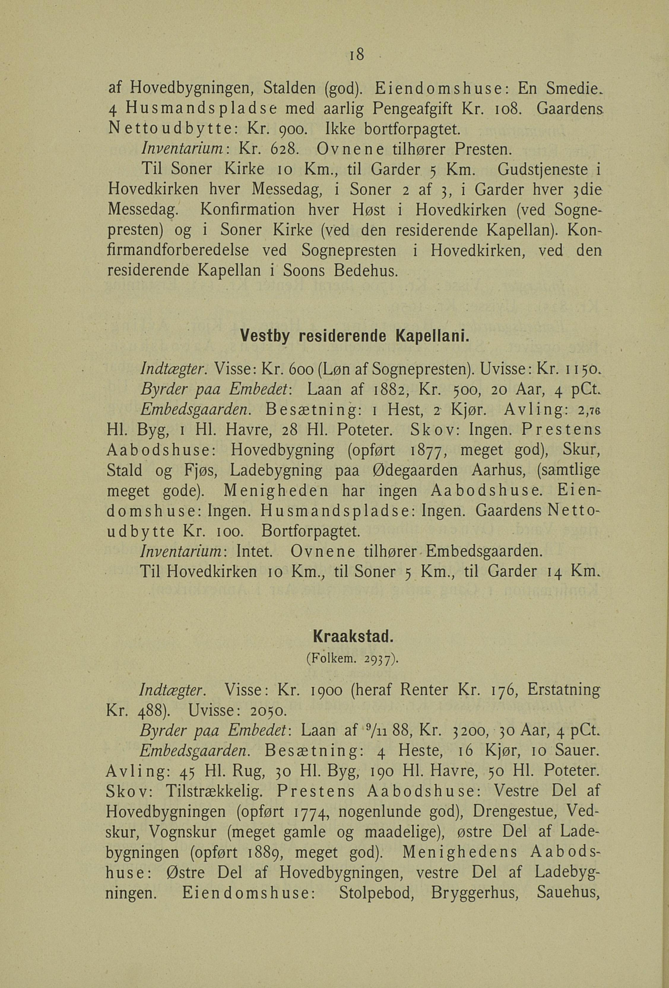 Indtægter. Visse: Kr. 600 (Løn af Sognepresten). Uvisse: Kr. 1 150.