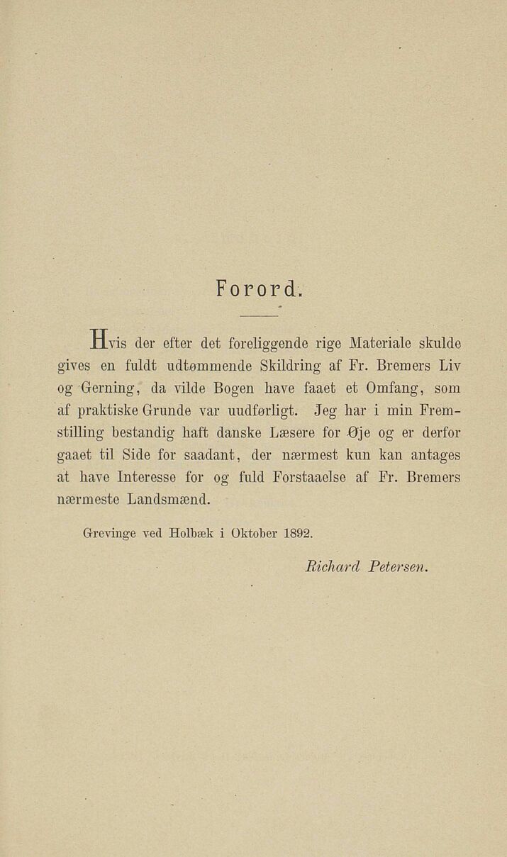 gives en fuldt udtømmende Skildring af Fr. Bremers Liv