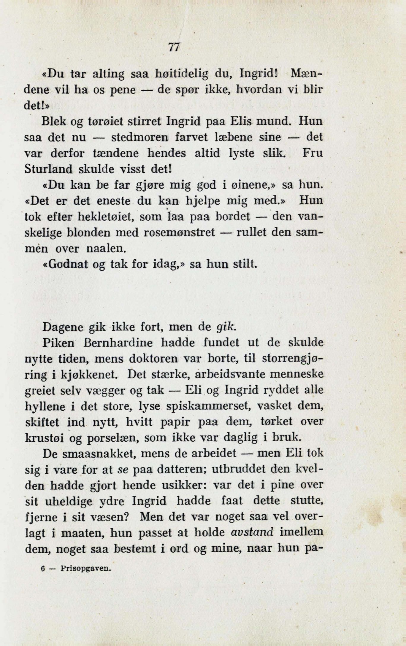 De smaasnakket, mens de arbeidet — men Eli tok