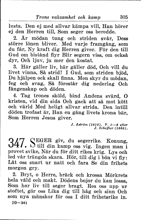 Full resolution (TIFF) - On this page / på denna sida - D. Det kristna livet - 6. Trons vaksamhet och kamp - 346. Upp, kristen, upp till kamp och strid! - 347. Seger giv, du segerrike
