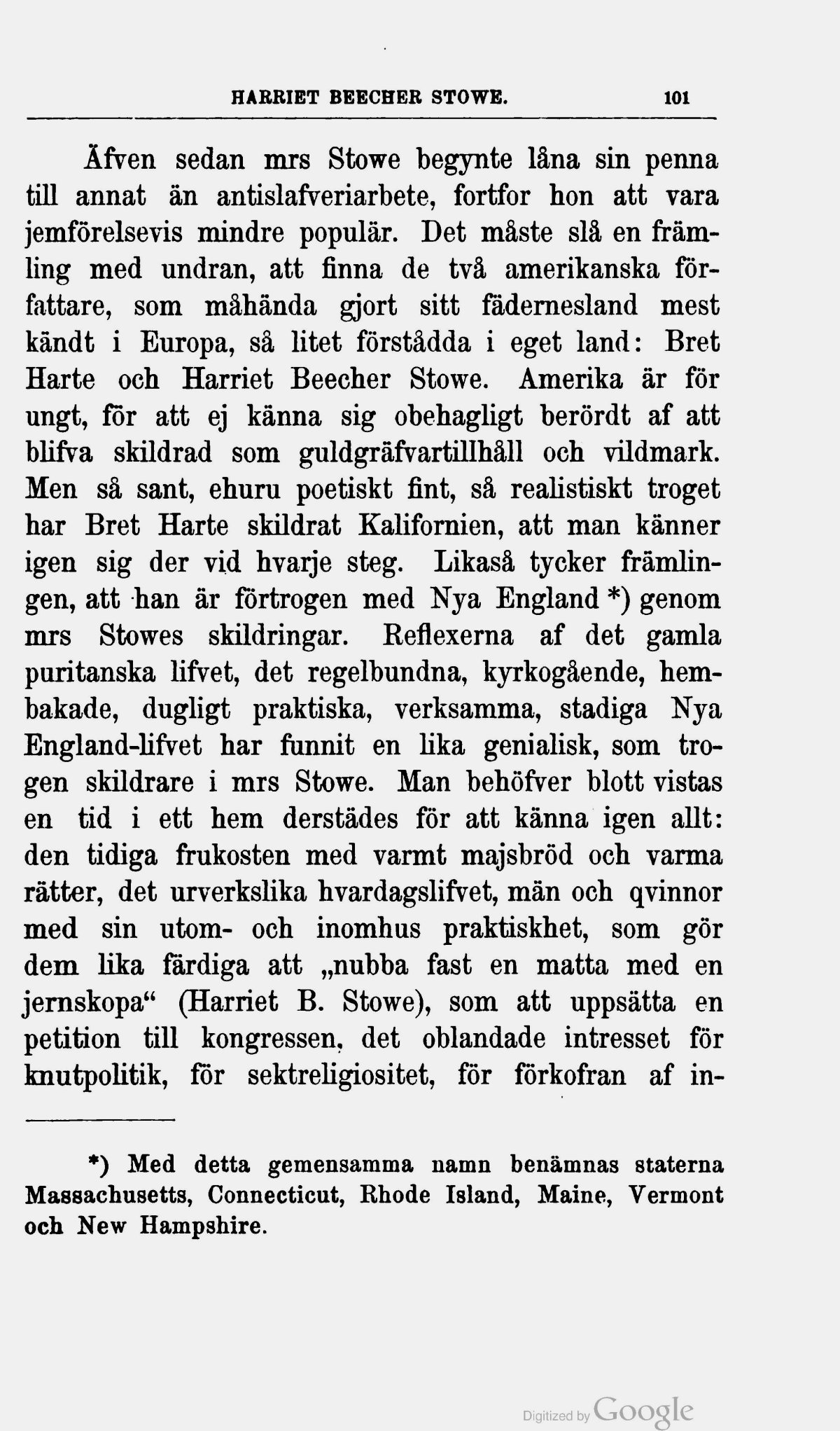 trogen skildrare i mrs Stowe. Man behöfver blott vistas
