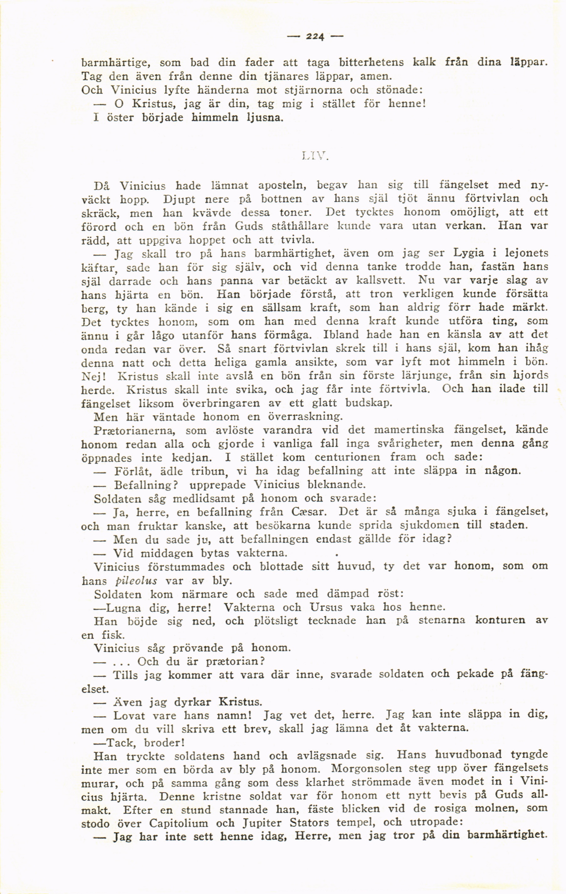 — Jag skall tro på hans barmhärtighet, även om jag ser Lygia i lejonets