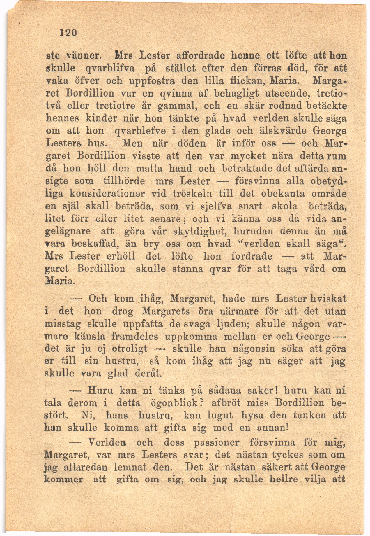 Margaret Bordillion skulle stanna qvar för att taga vård om