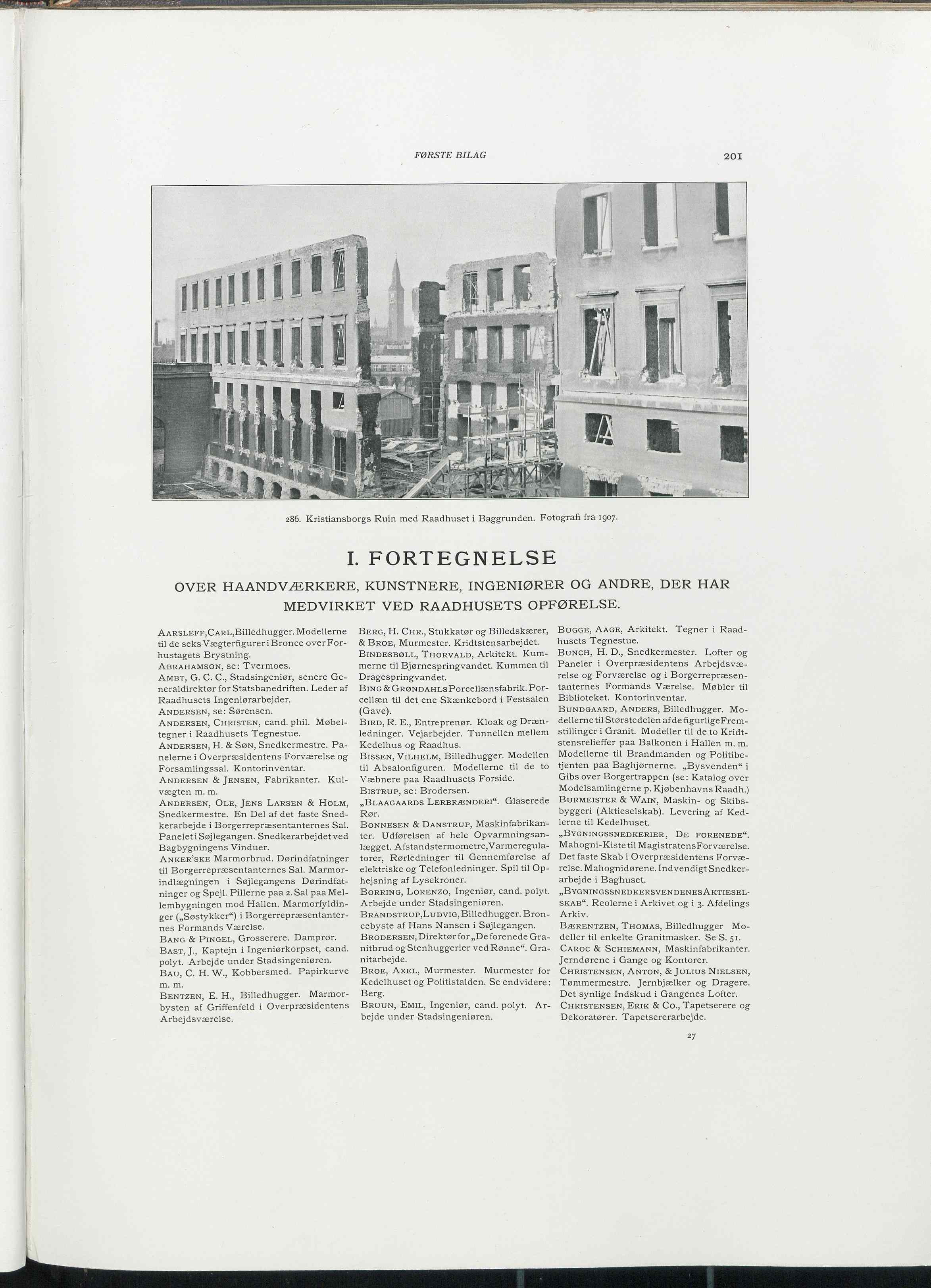Full resolution (JPEG) - On this page / på denna sida - Bilag - I. Fortegnelse over Haandværkere, Kunstnere, Ingeniører og andre der har medvirket ved Raadhusets Opførelse