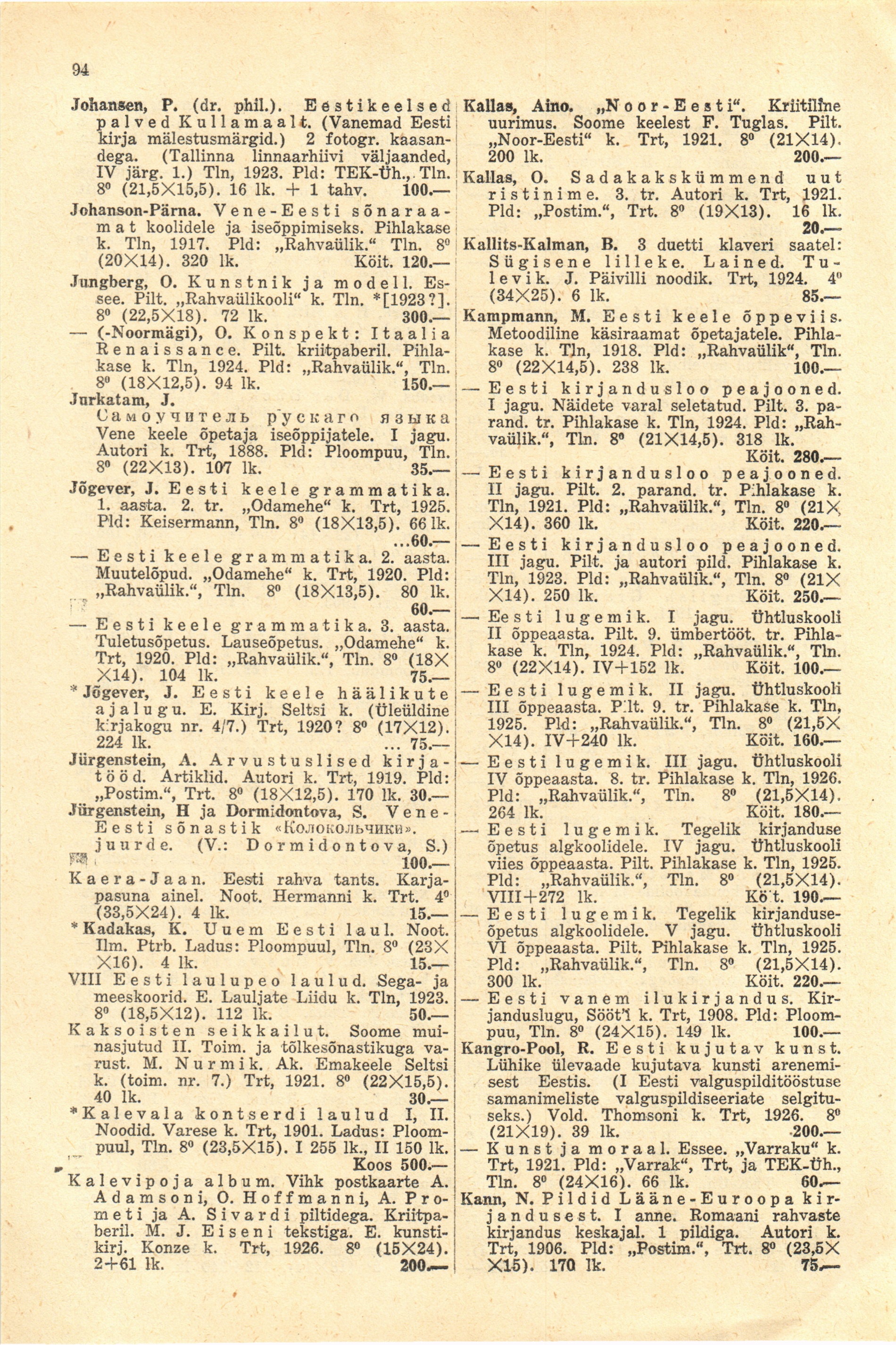 Ploompuu, Tln. 8° (24X15). 149 lk. 100.—