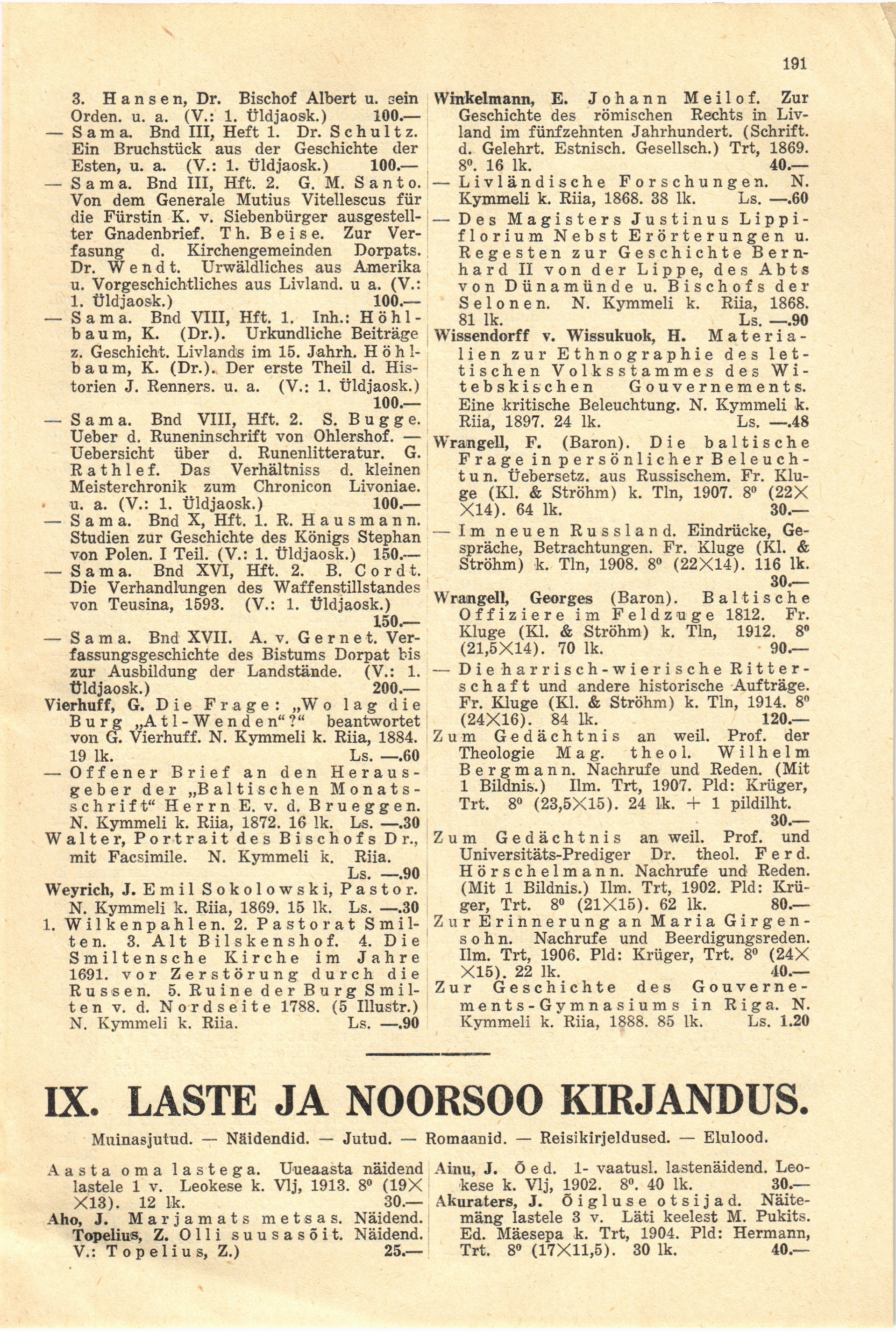Kymmeli k. Riia, 1888. 85 lk. Ls. 1.20