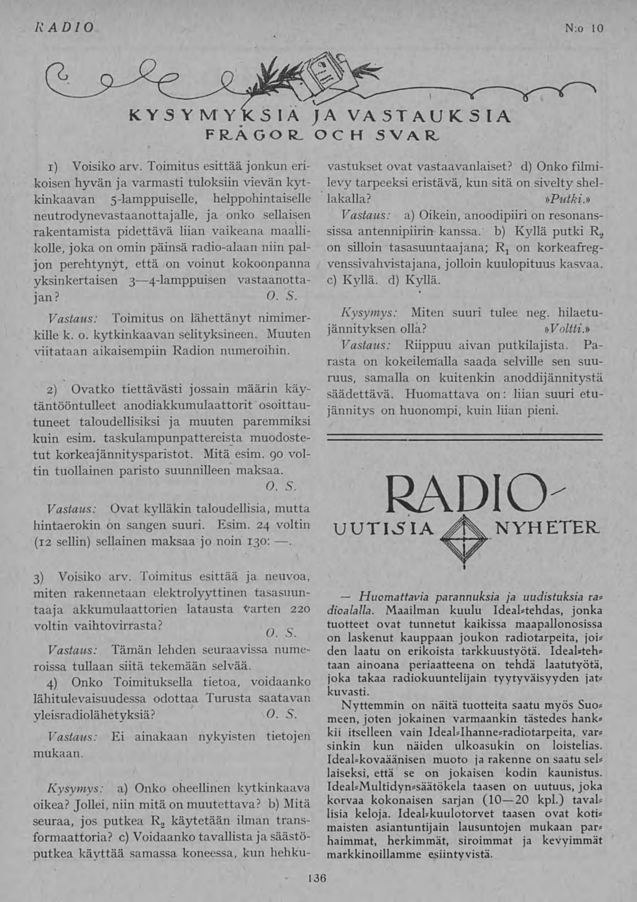 Full resolution (JPEG) - On this page / på denna sida - N:o 10. Lokakuu — Oktober - Kysymyksiä ja vastauksia — Frågor och svar - Radiouutisia — Radionyheter